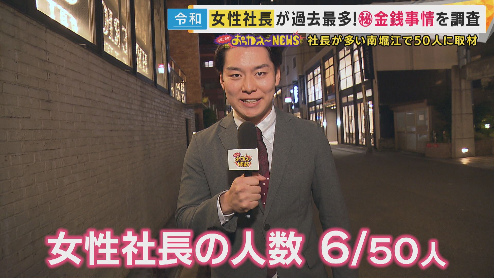 そこで今回、大阪の女性50人に声をかけると、何人の女性社長に出会うことができるのか、西中蓮アナウンサーが調査しました。