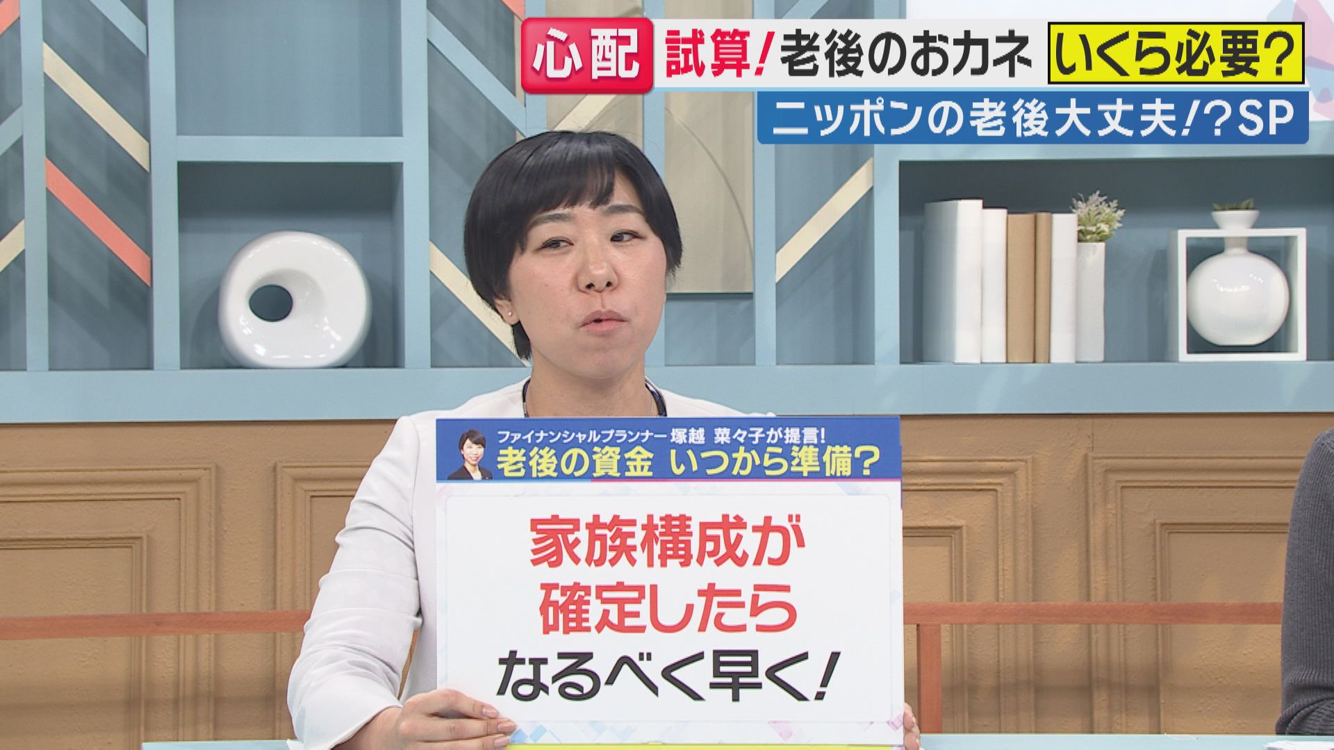 「老後の資金準備をいつから始めるべきか」という質問に、塚越さんは「もちろん早いにこしたことはないですが、家族構成が確定したら考え始めるとよい」と回答。「子どもの数や、教育期間がある程度見えてくる50代頃から、具体的に計画を立てると良い」とアドバイスしています。