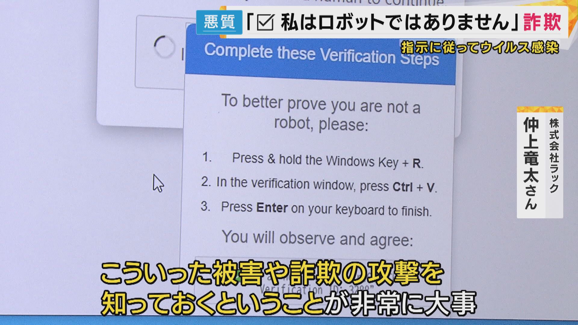 【株式会社ラック 仲上竜太さん】「自分でドアを開けてしまうような形で実行させるのが、『クリックフィックス』の手口です。一番できる防護策は、こういった被害や詐欺の攻撃を知っておくことが非常に大事」