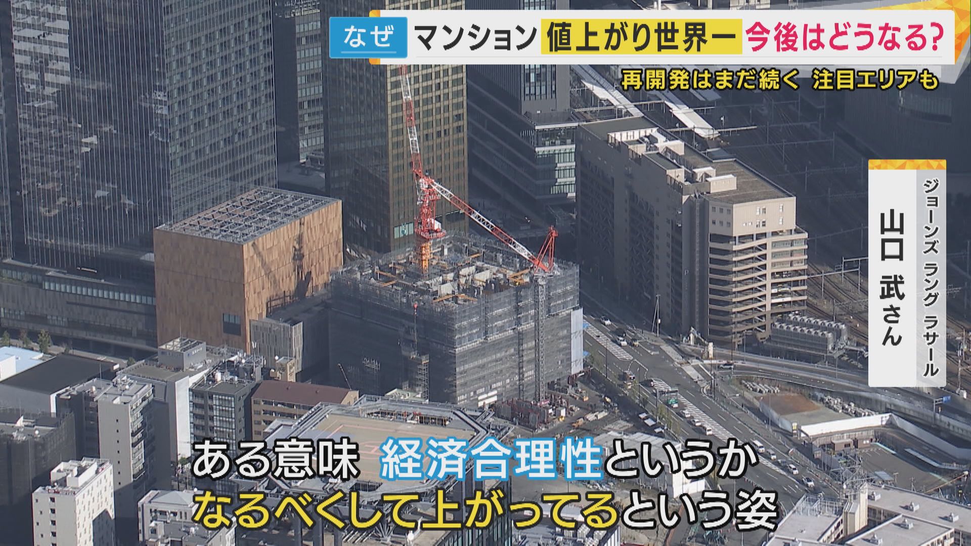 【ジョーンズラングラサール 山口武さん】「ある意味、経済合理性というか、なるべくして上がってるという姿。不動産の持つ価値・稼ぐ力が高まったことによって、上がってきている。致し方ないというところだと思います」