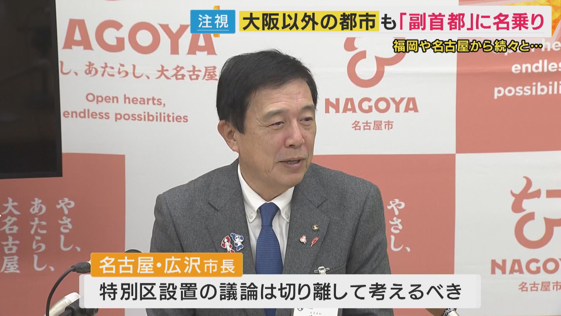 【名古屋市・広沢一郎市長】「特別区前提というのはちょっとおかしいんじゃないのかなと。首都のバックアップという危機管理の議論と特別区という地方自治体の議論は別でございますのでここは切り分けて考えるべき」