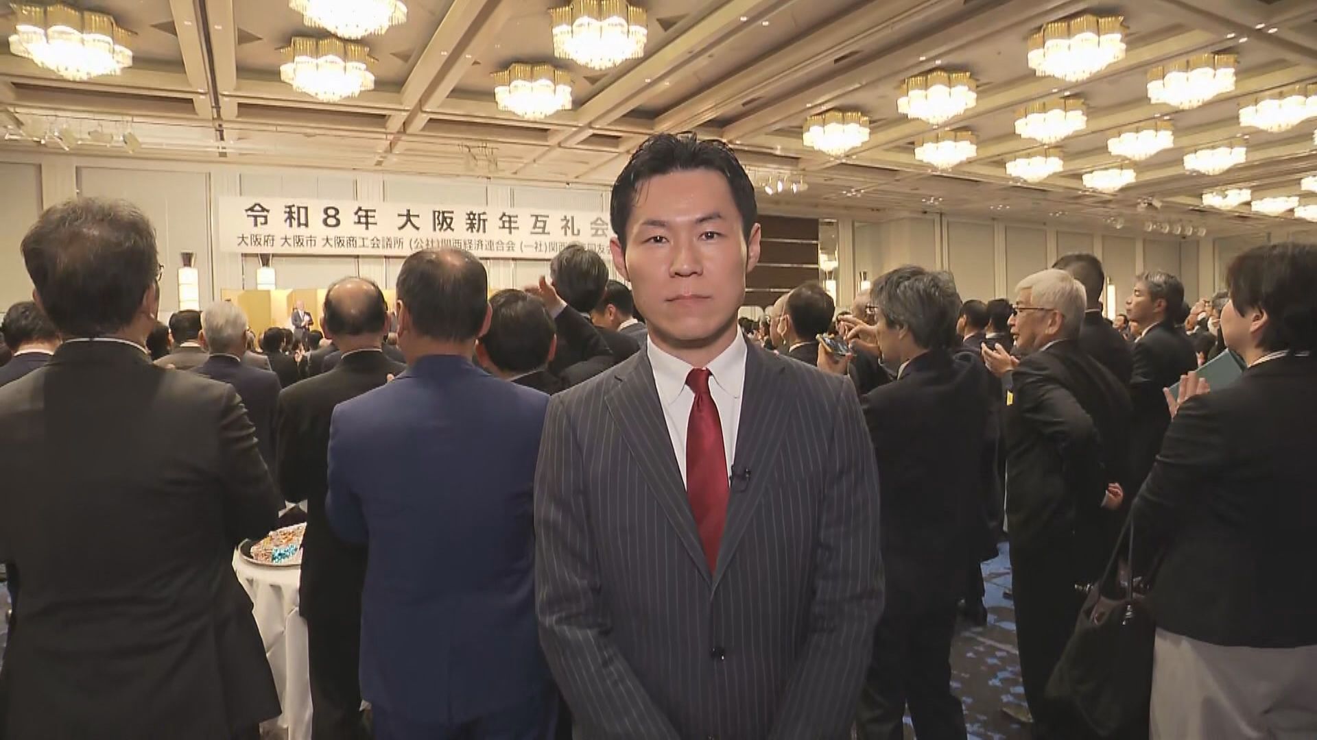 大阪府の吉村知事や関西経済同友会の永井代表幹事など、関西の政財界のトップが顔をそろえた会場は、去年の万博の成功の余韻からか、お祝いムード一色でした。