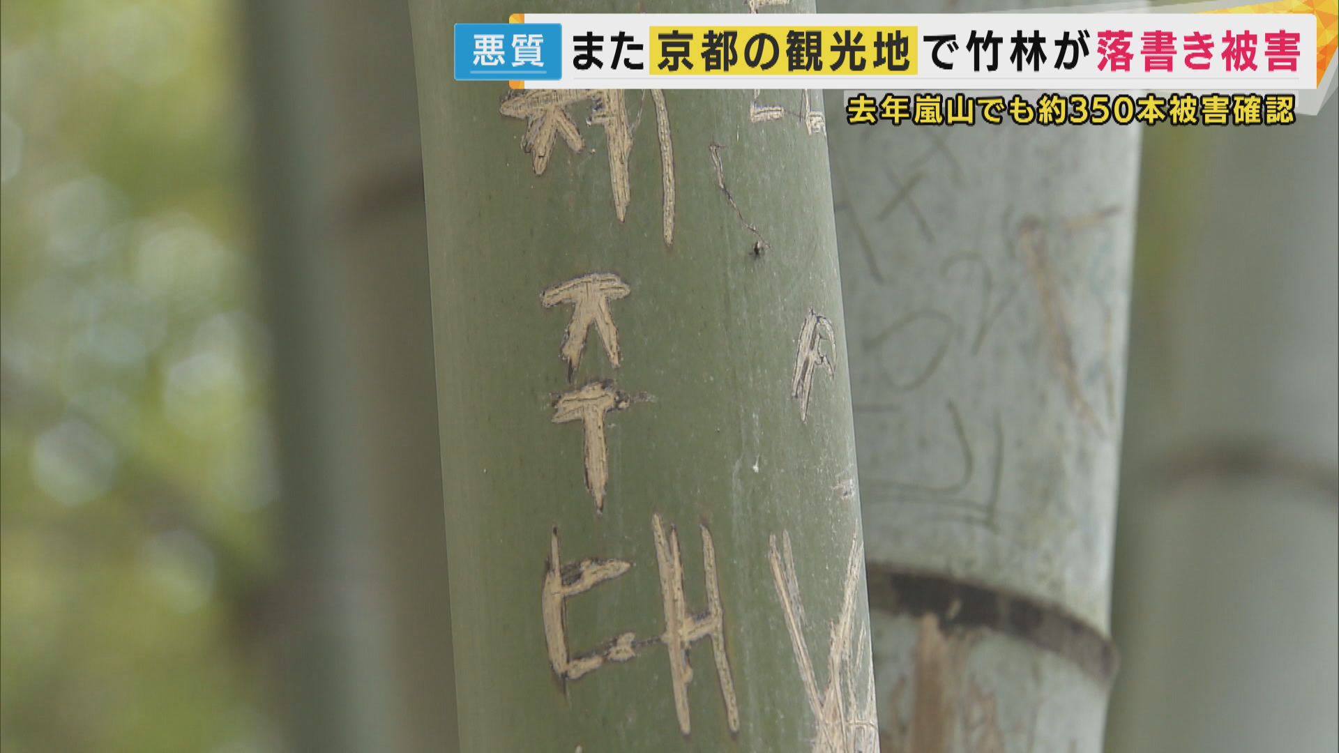 去年、嵐山の「竹林の小径(ちくりんのこみち)」でも、少なくとも350本の竹に落書きが確認され、倒れる恐れがあることなどから一部、伐採せざるを得ない状況に追い込まれました。