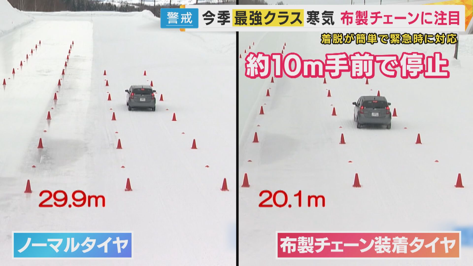 そして移動が多い3連休に注意してもらいたいのが、雪や凍結した道路への対策。最近関心が高まっている「布チェーン」の効果を取材しました。