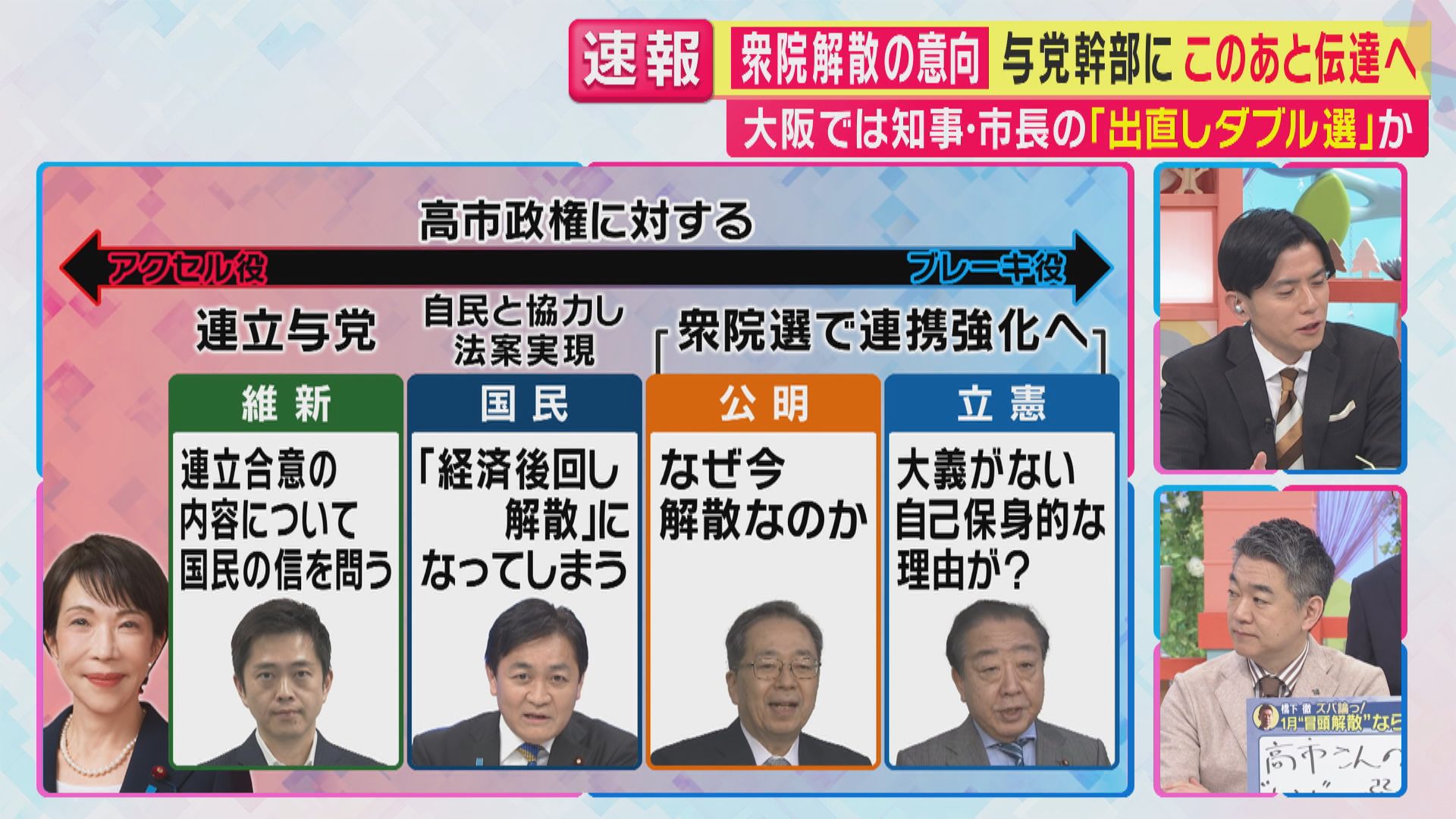 今後、高市首相が与党幹部に解散を伝えた後、どのような展開になるのか。衆院選と大阪ダブル選の行方は、日本の政治に大きな影響を与えることになりそうです。