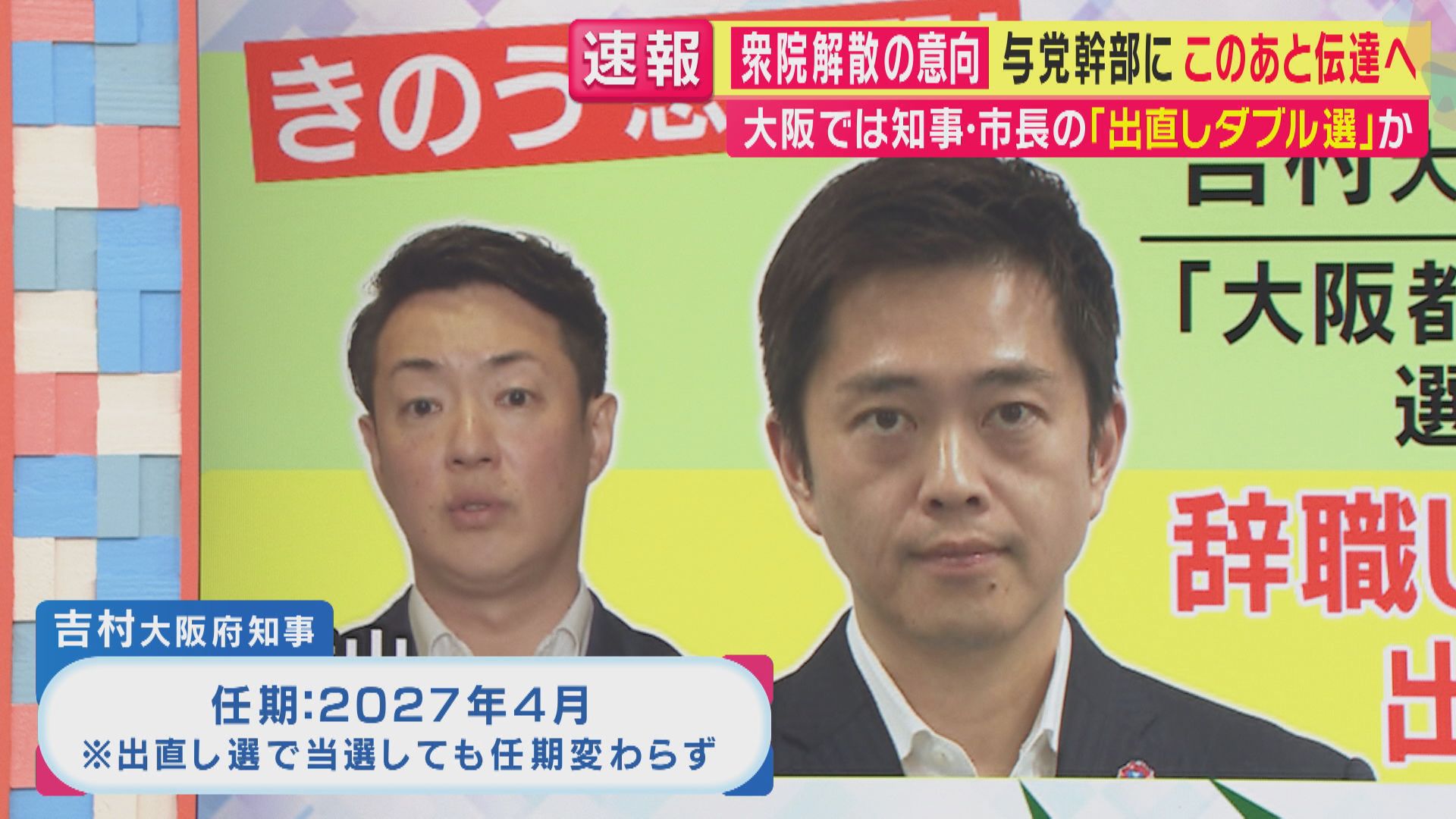 また吉村知事が仮に再選されたとしても、知事としての任期は今と同じ27年4月までとなります。