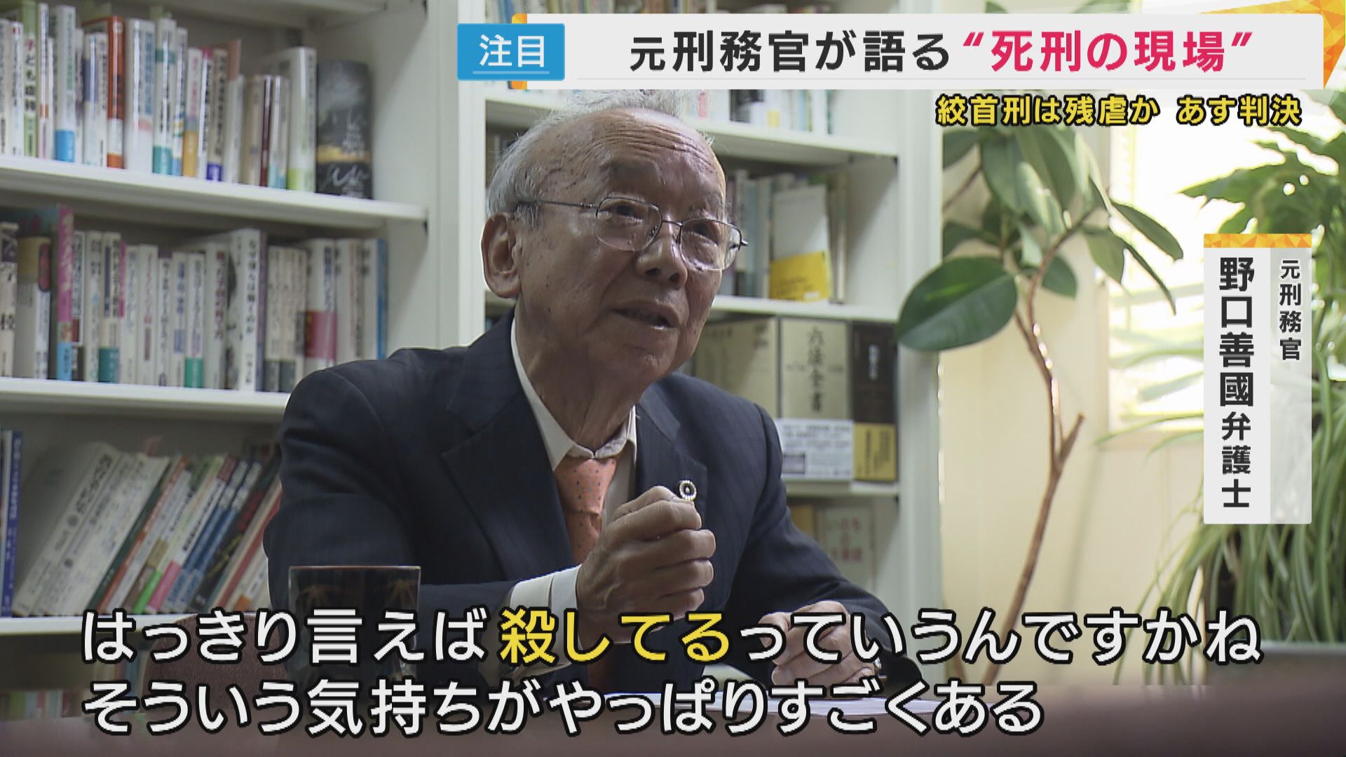 【元刑務官・野口善國弁護士】「上からこう見てると、ここの胸のところの心臓がボコボコってこう動いてるのが見えるわけです。何かやっぱり人の命を奪ってるというのか、はっきり言えば殺してるっていうんですかね。そういう気持ちがやっぱりすごくある」