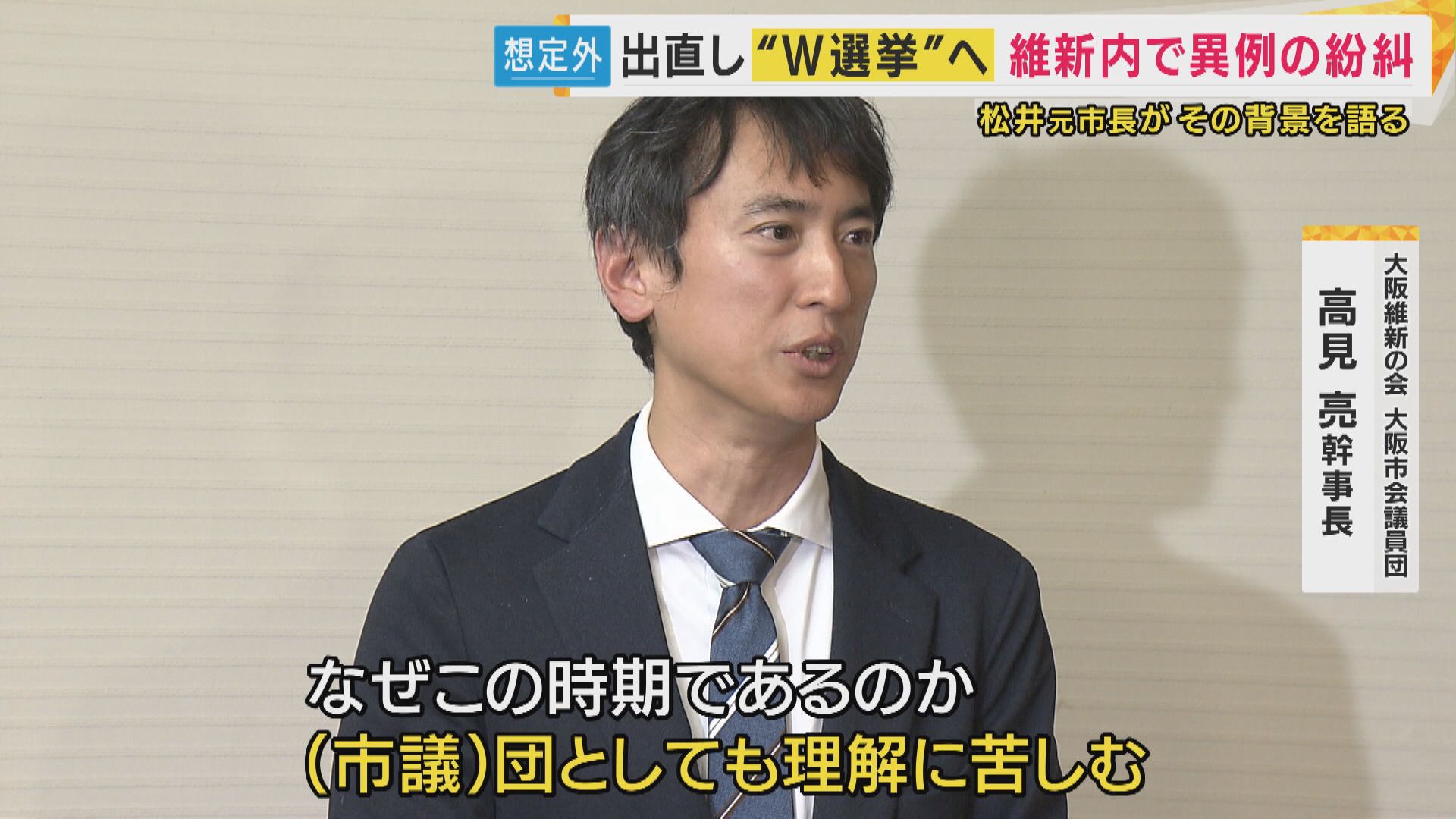 【大阪維新の会・大阪市会議員団 高見亮幹事長】「なぜこの時期であるのか。(市議)団としても理解に苦しむ」