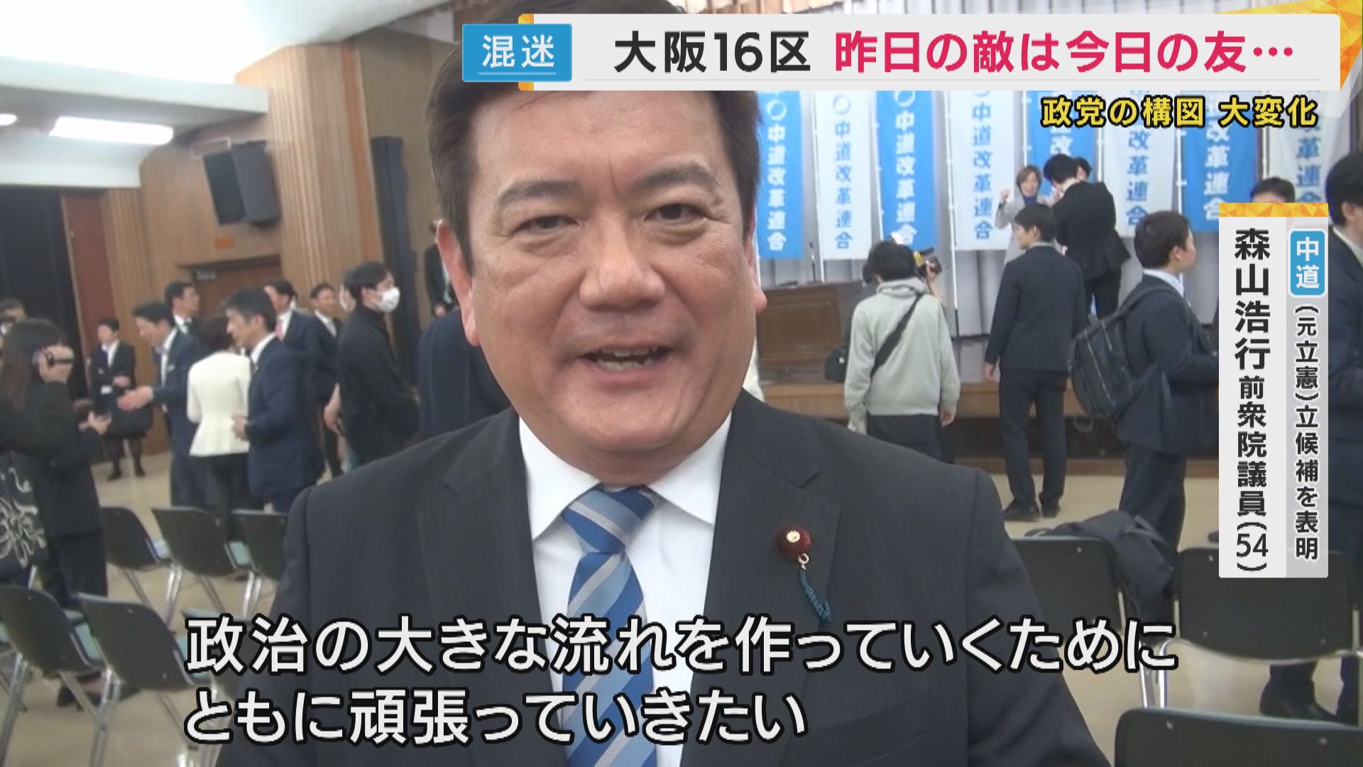 【中道・森山浩行前衆院議員】「お互い(公明・立憲)の支持者の間には大きなわだかまりであったりとか、複雑な思いというのがあるという状況にあると思います。 ですが、ここで『もう1つの政権つくる』その大義のために、政治のこの大きな流れをつくっていくために共に頑張っていきたいと」
