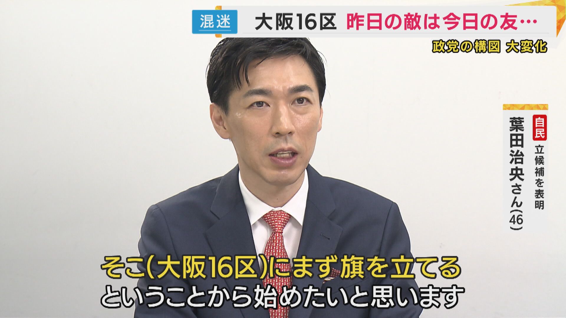 【自民・葉田治央さん】「自民党が30年間、衆議院で候補者を立ててこなかったので、そこ(大阪16区)にまず旗を立てるということから始めたいと思います。 16区は私の地元なので、いかせて(立候補させて)くださいよと。本当に恩返しがしたい」