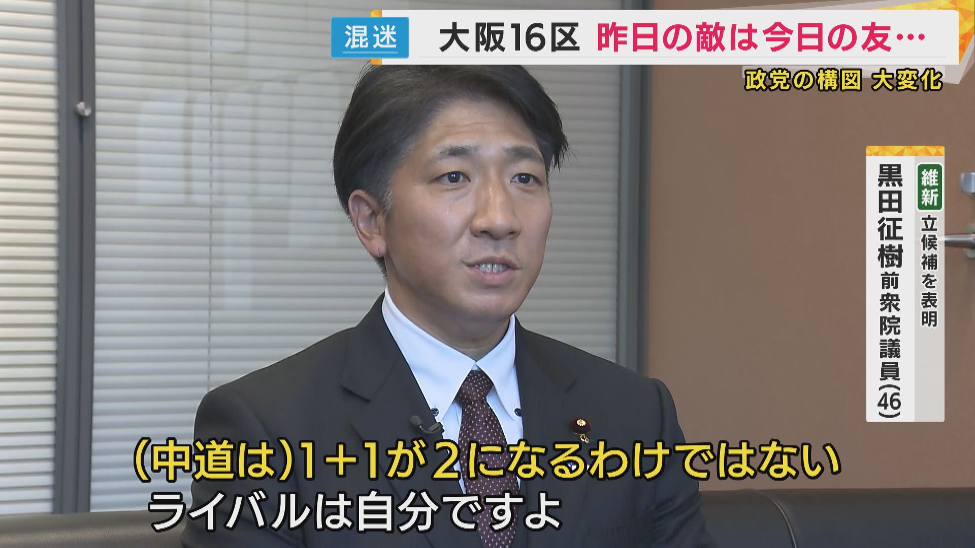 今回の解散までには、新たな連立政権や新党が誕生し、選挙戦の構図は大きく様変わり。それにより、関西の選挙区でも異変が起きています。