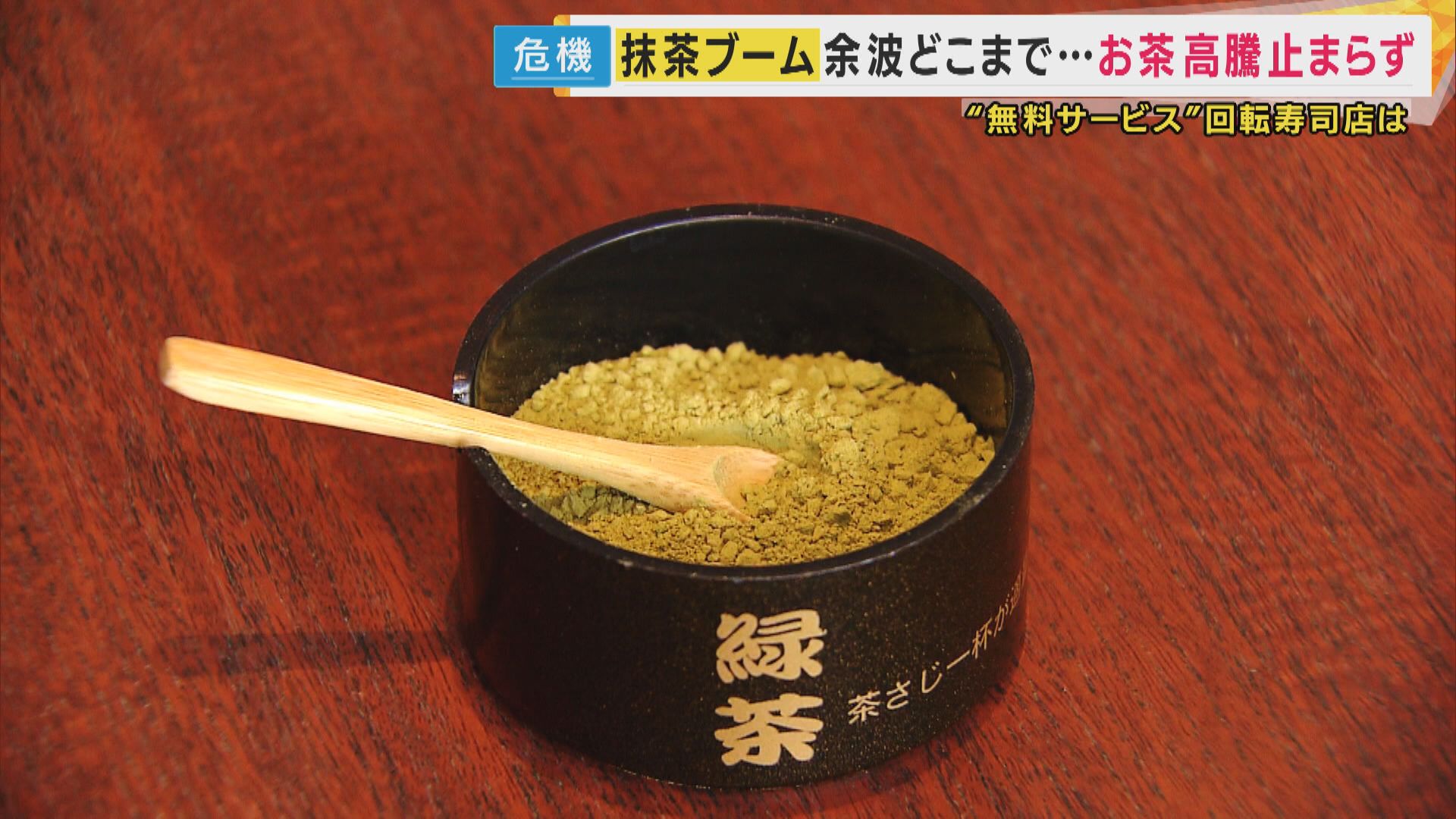 抹茶の原料確保のため、他の茶葉の生産量が減り、価格が高騰する事態に発展。回転寿司店の無料サービスや、ペットボトル飲料まで影響が広がっているのです。