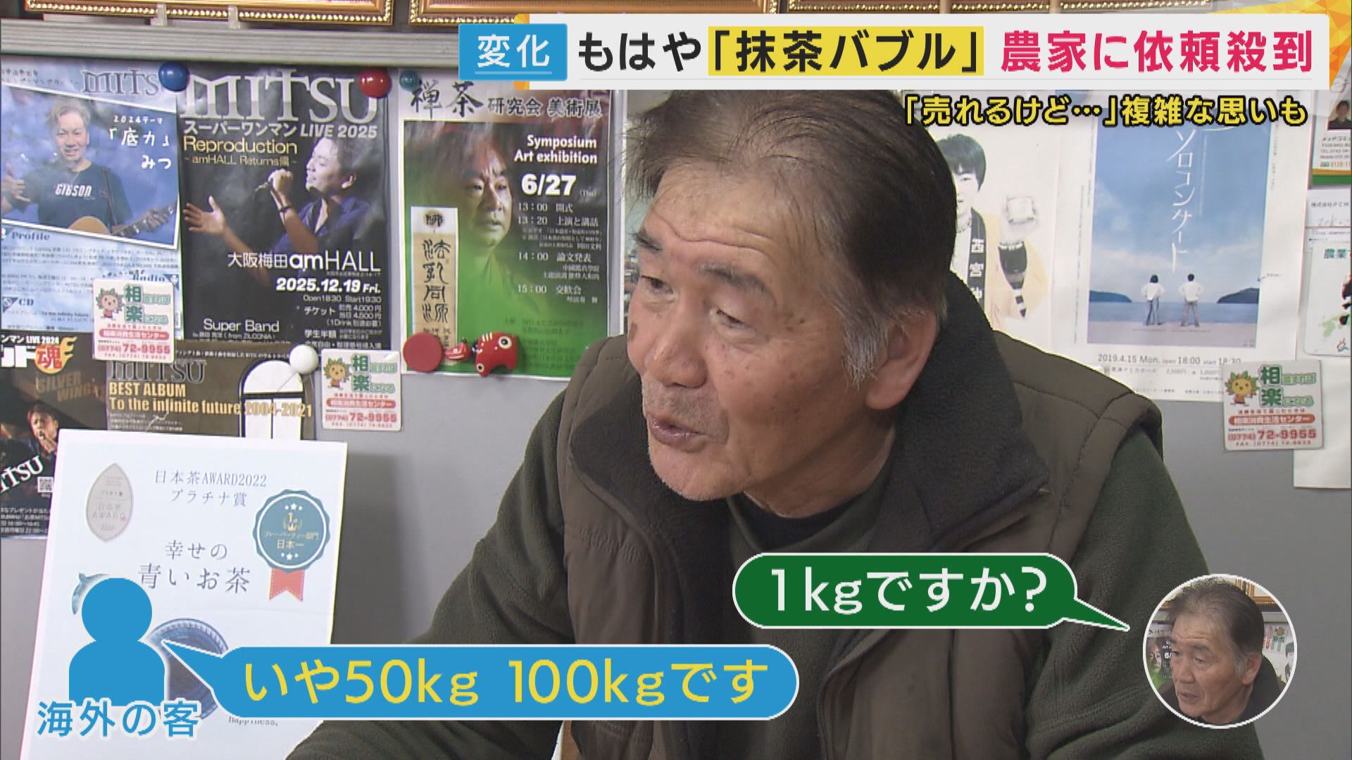 50キロ、100キロという注文も珍しくなく、抹茶ブームは「抹茶バブル」と呼べる状況に発展。しかし、農家の思いは複雑です。