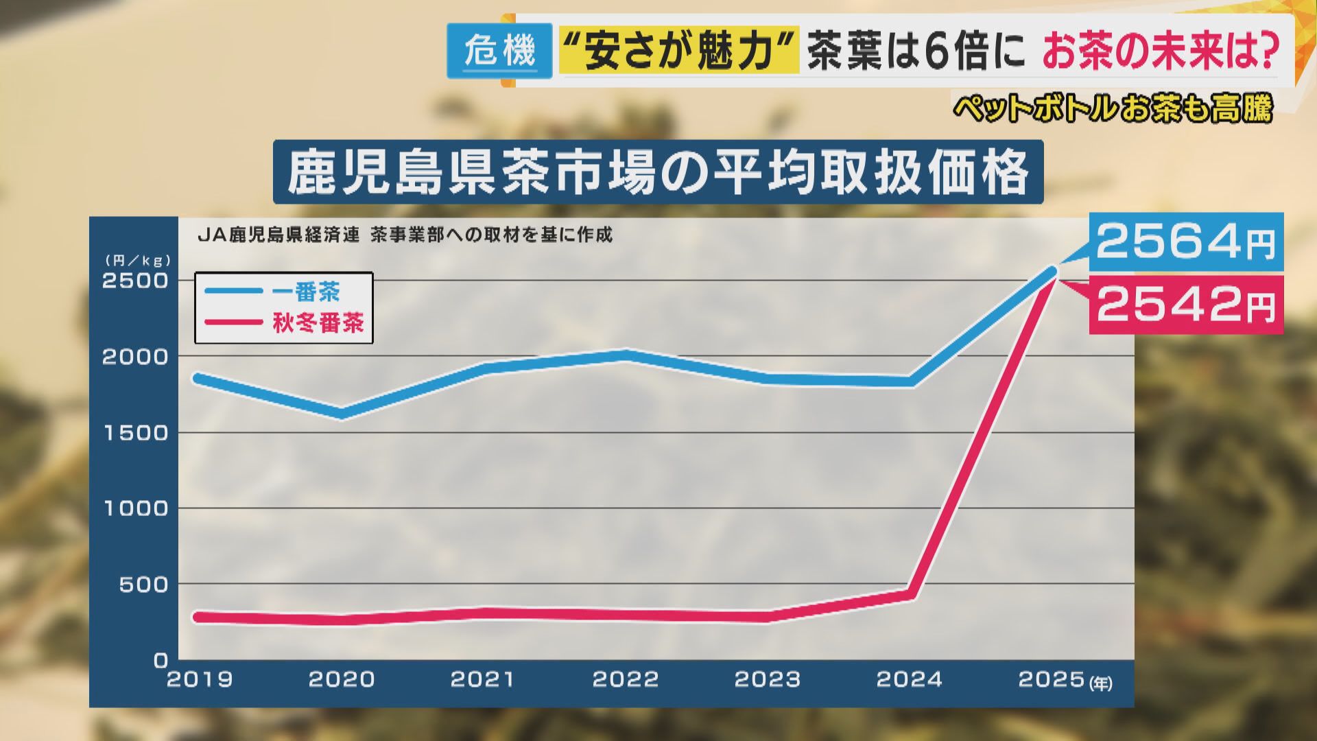 しかし、その秋冬番茶の取引価格が去年突然高騰。本来最も高価な一番茶と並ぶ価格となっているのです。
