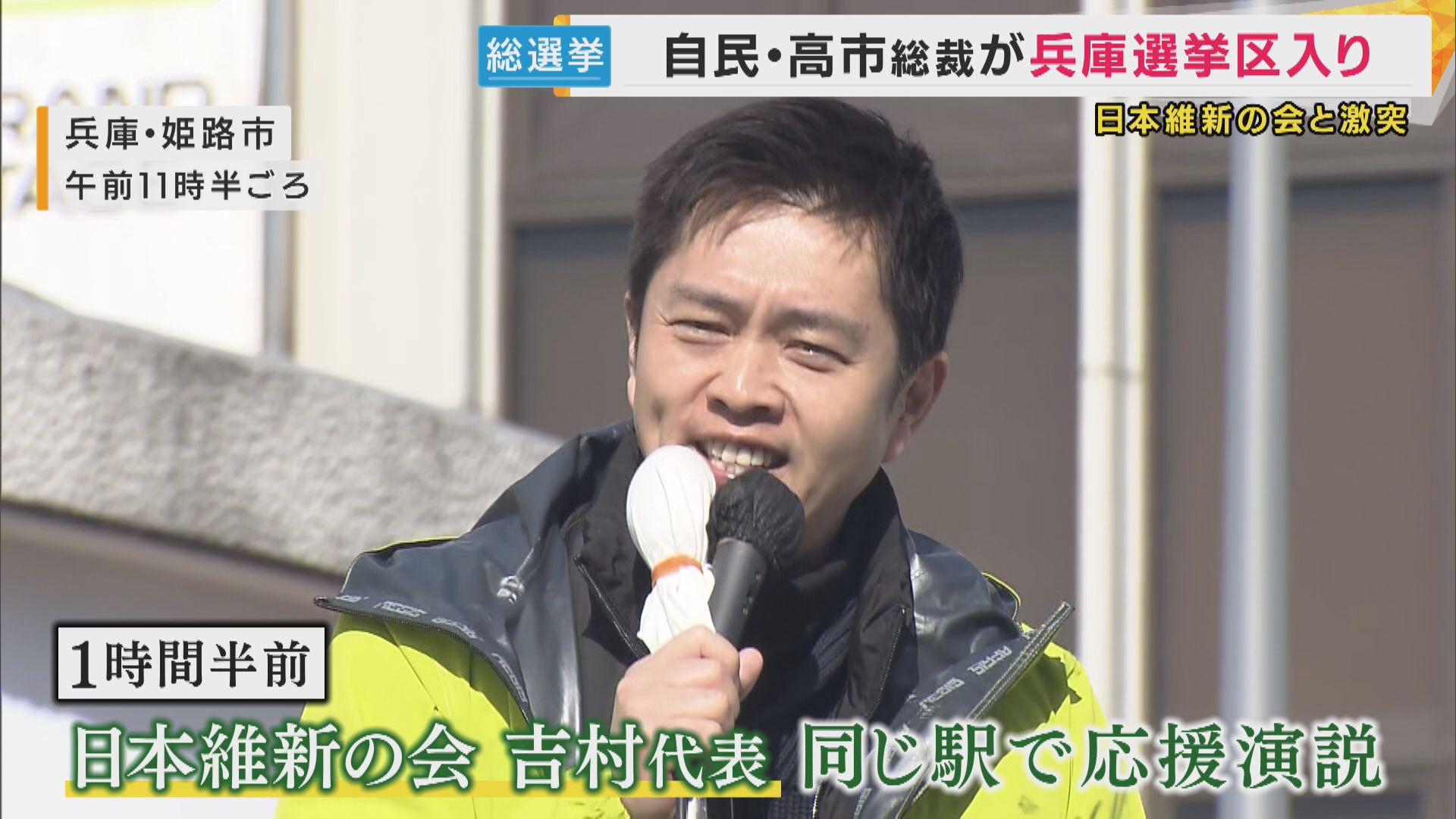 ただ、高市総裁が29日に入った選挙区には連立を組む日本維新の会も候補者を擁立していて、高市総裁が演説した1時間半前には、吉村代表も同じ駅で演説をしていました。