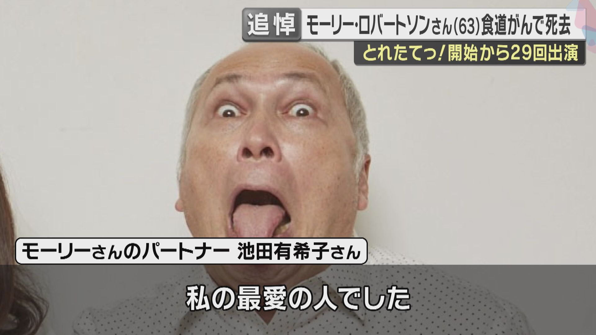 モーリー・ロバートソンさんは先週木曜日、食道がんのため63歳で亡くなりました。事実婚のパートナーでミュージカル俳優の池田有希子さんは1日、自身のSNSでコメントを発表。