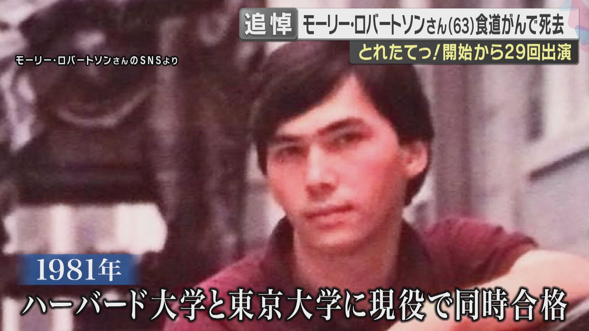 国際ジャーナリストのモーリー・ロバートソンさんが、食道がんのため63歳で亡くなりました。