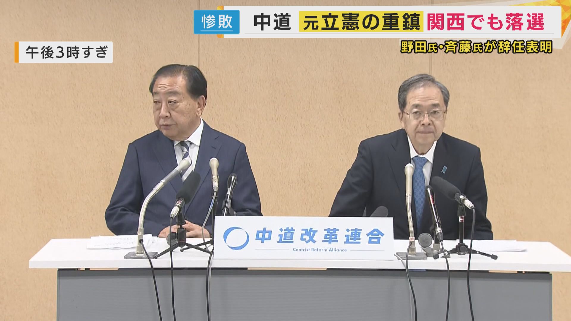 そして午後3時過ぎ、野田・斉藤共同代表が辞任を表明しました。