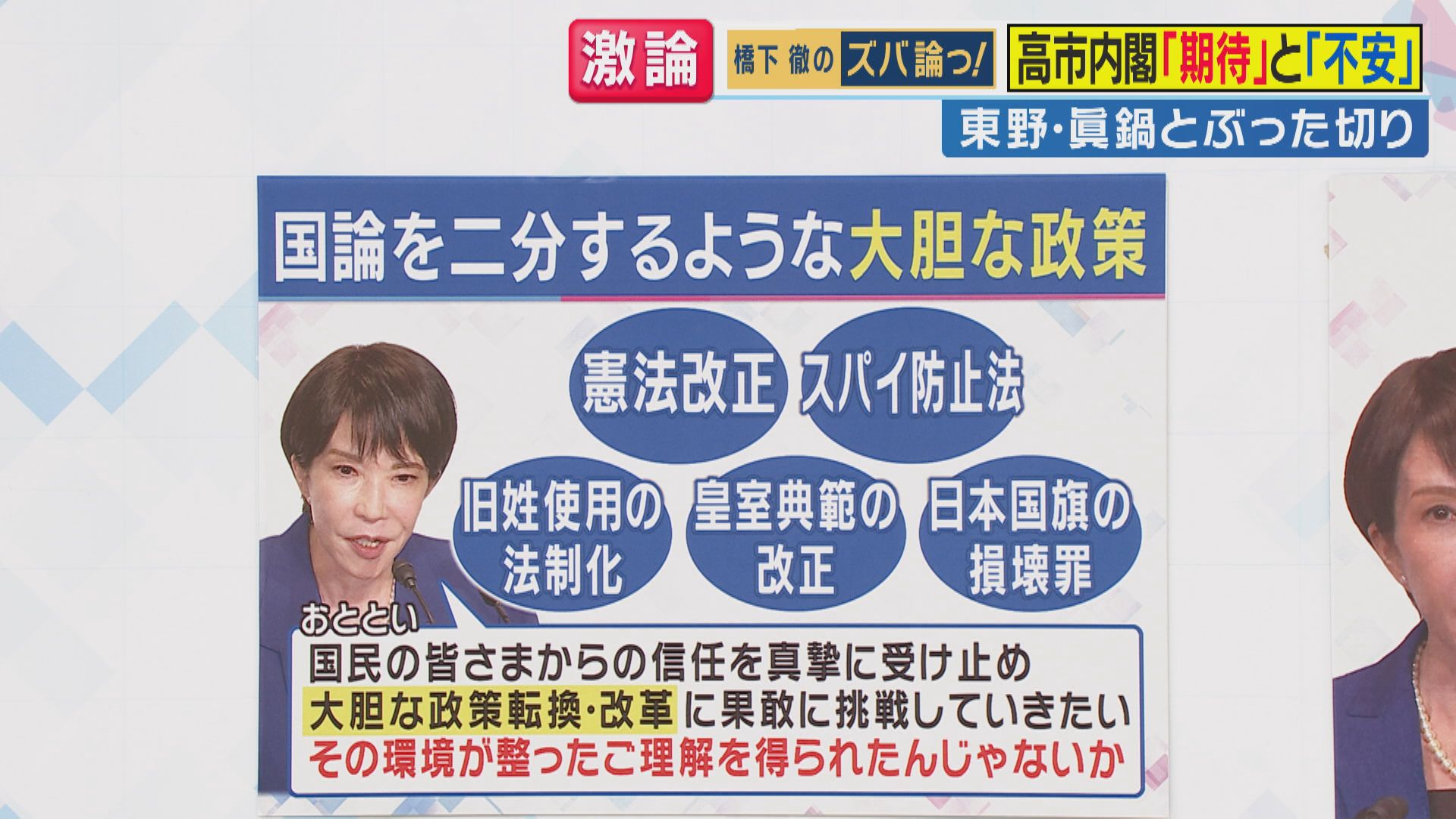 こういうことも『憲法違反だ』と必ず学者が山ほど言ってきますけど、この多くの民意を受けて高市さんは、これまでのこの日本の政治を大きく転換して、前に進めてってもらいたい。その可能性も大いにある。