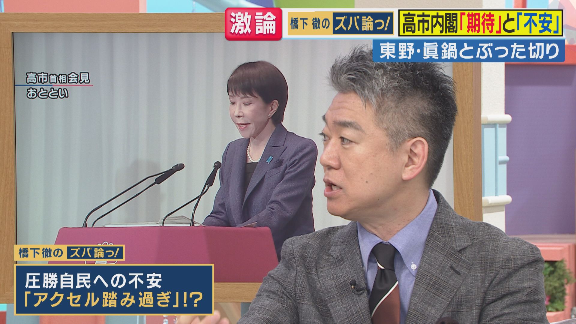 一方で、橋下氏は高市総理の「台湾有事」発言については「アクセル踏み込み過ぎには要注意」と指摘します。