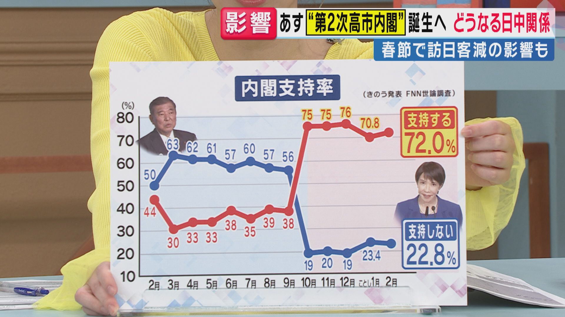 政治ジャーナリストの岩田明子さんは、高市政権の外交、特に日中関係について「慎重に、これで政権基盤が強くなったわけですから、長期スパンでじっくり構えるというところ」と分析します。