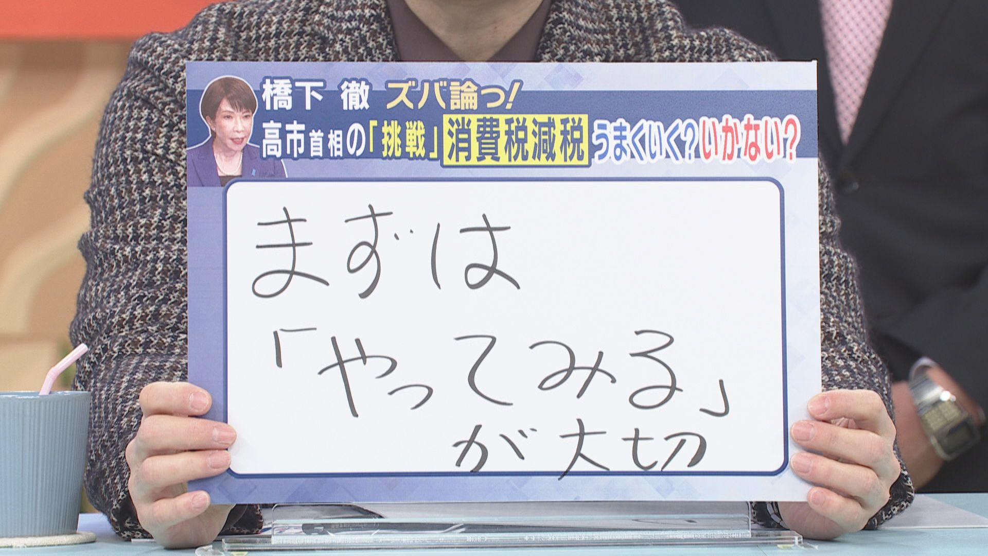 消費税については、今までも『下げられない』と。誰も下げることをやらなかったんで。1回やってみて、本当にデメリットがあるんだったらまた元に戻せばいいんでね」
