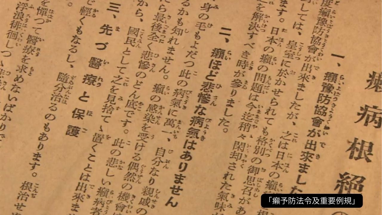 戦後、諸外国では治療薬の登場などで治る病気となり、隔離政策の廃止が進みましたが、日本は政策を続け、法律が廃止されたのは1996年(平成8年)になってからでした。