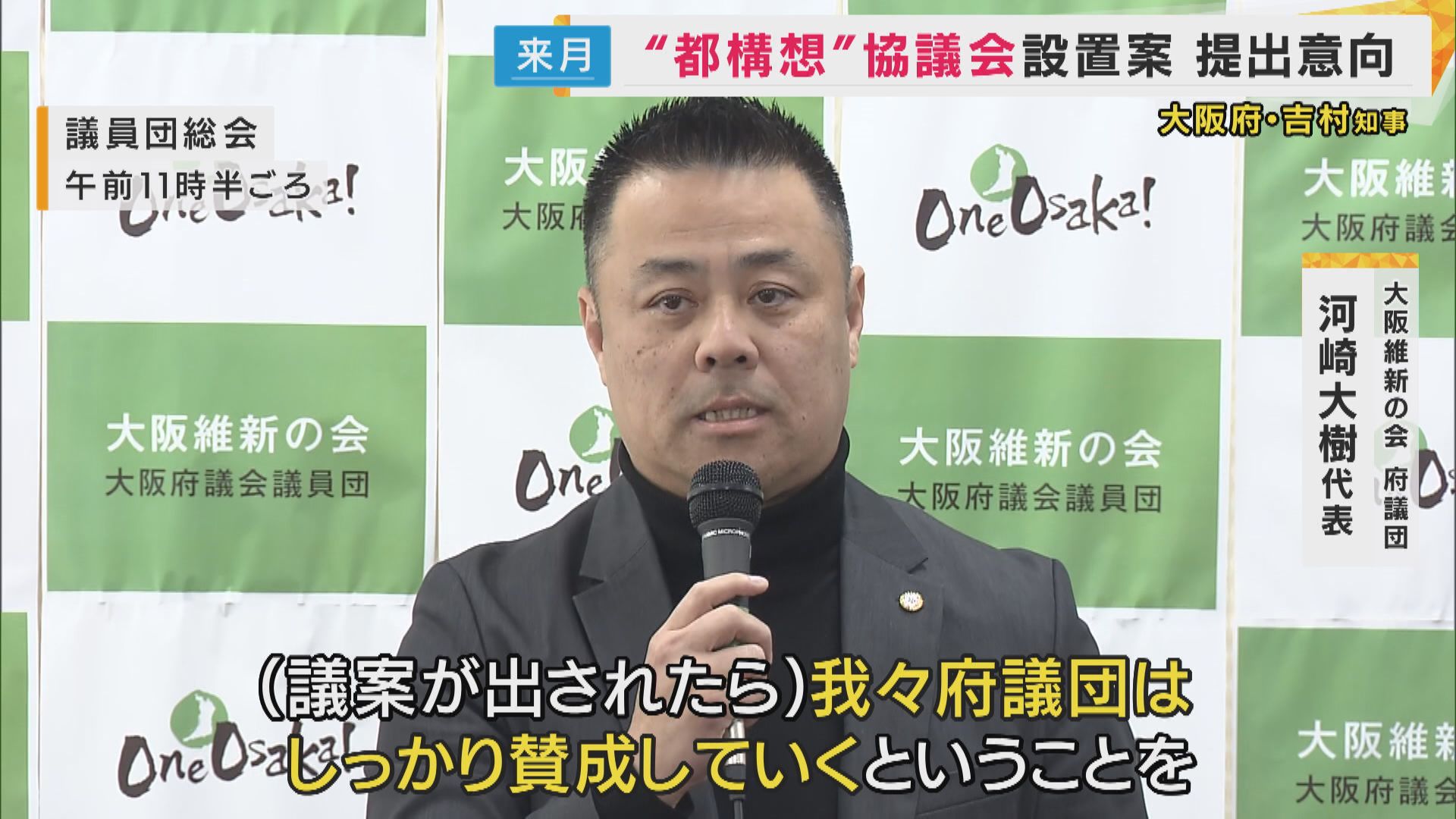 【大阪維新の会府議団 河崎大樹代表】「(議案が出されたら)我々府議団はしっかり賛成していくということを皆様の総意としてこの場でお願いしたいと思いますがよろしいでしょうか?」