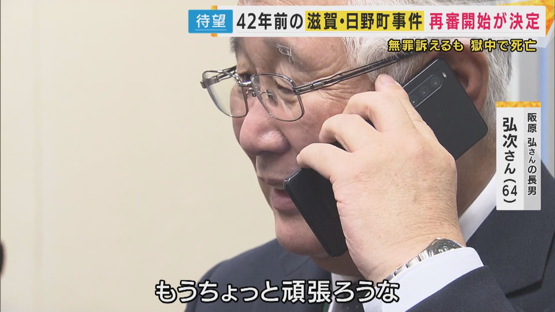 弘次さんは、70年間手付かずの再審法の改正を訴える集会に参加していたところ、待ちに待った知らせが届きました。