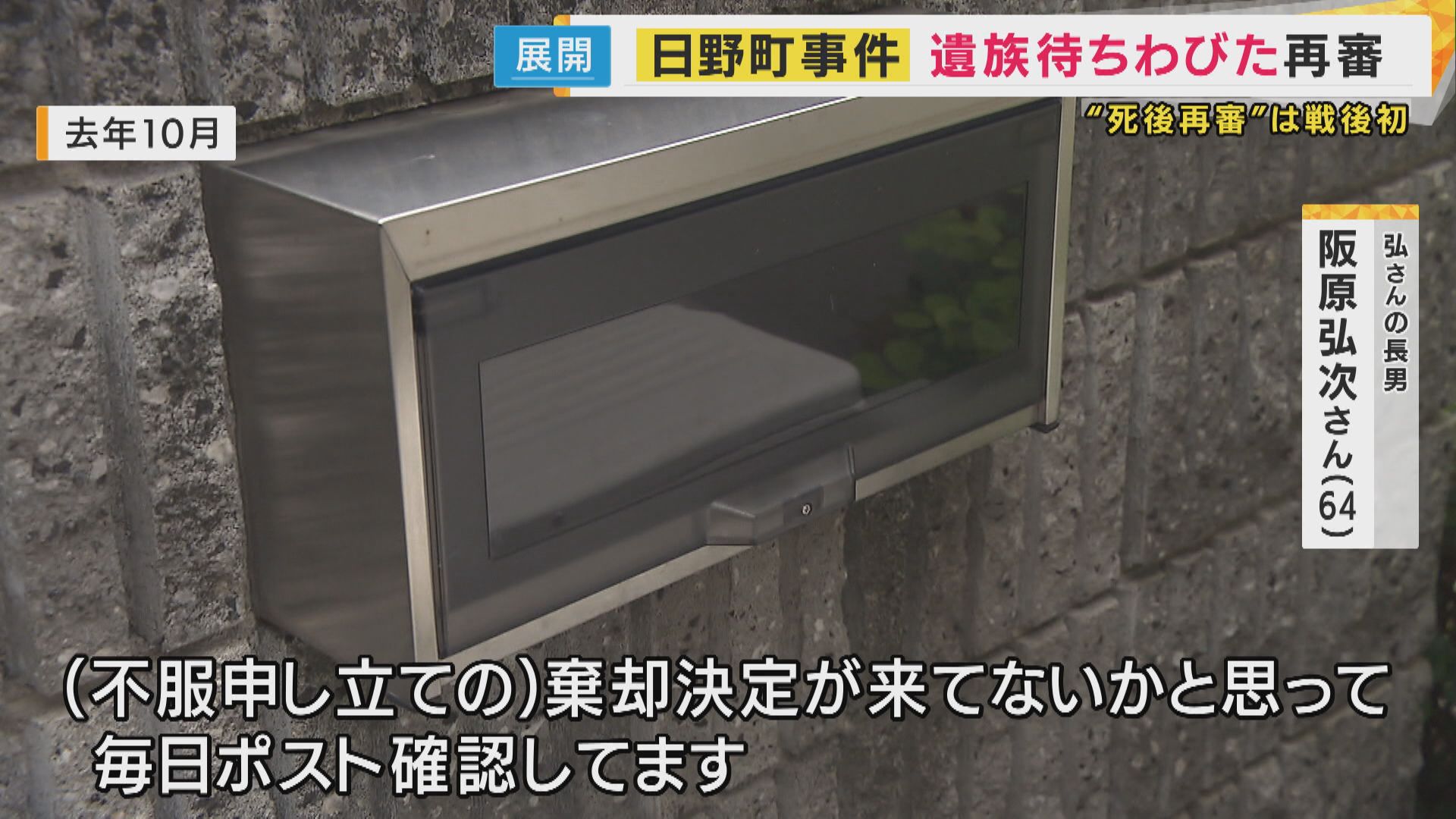 【阪原弘次さん(去年10月)】「(不服申し立てに)棄却決定が来てないかと思って毎日ポスト確認してます。最高裁判所から通達がきてないかと思って…来てないですね。つらいですね」