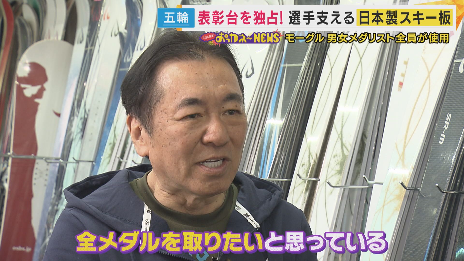 【株式会社マテリアルスポーツ代表取締役 藤本誠さん】「スキーのモーグルという競技。選手が勝ったんですけど、そのスキーのメーカー。全部、私のメーカー」