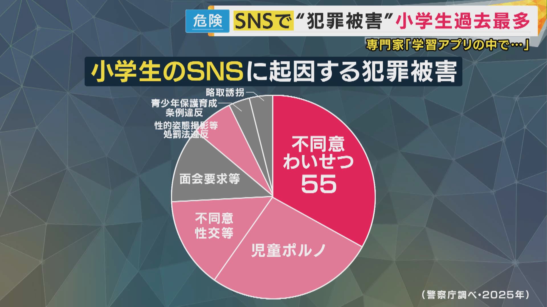 警察庁によると、去年、SNSをきっかけに犯罪の被害にあった小学生は167人と、4年前から倍増し、過去10年間で最多となりました。