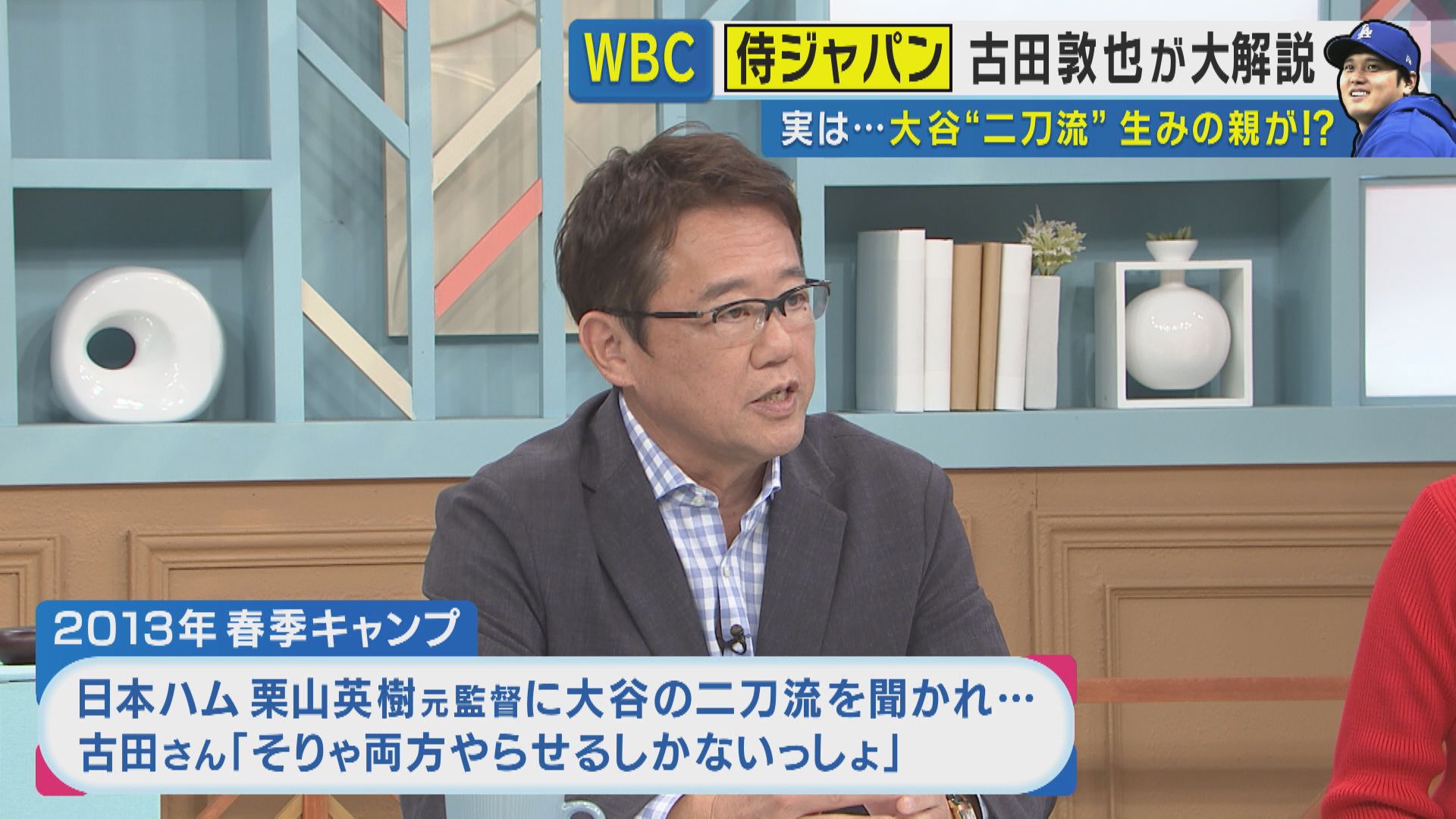 大谷選手がプロ野球選手としてスタート切ったばかりの2013年の春のキャンプで、当時の日本ハムの栗山監督から、“二刀流をどうしようか”という質問を受けた古田さんが、「そりゃ両方やらせるしかないっしょ」と発言していたといいます。