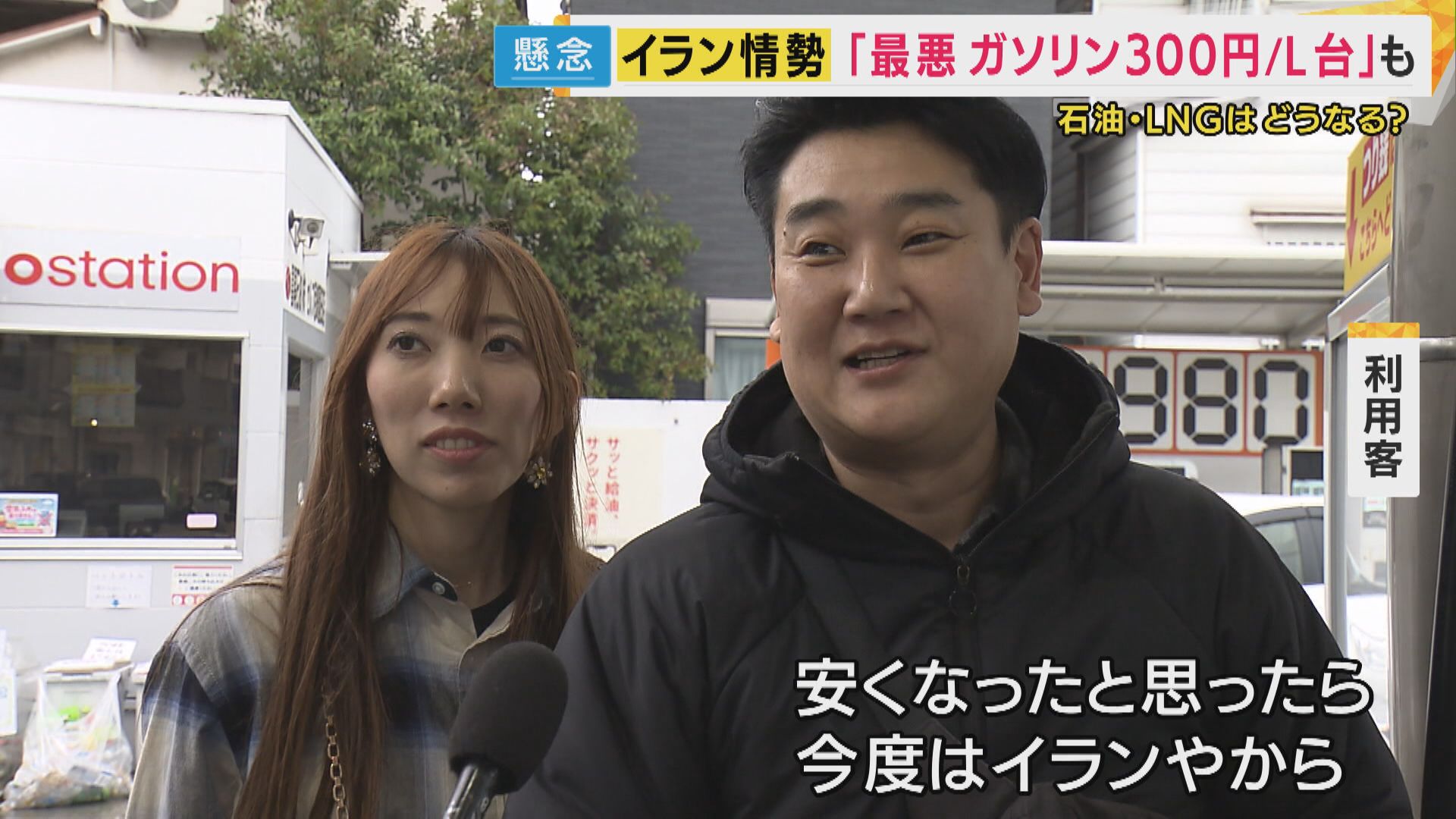 3日、ガソリンスタンドを取材すると…「安くなったと思ったら、今度はイランやから。(価格が)上がる前に満タンにして」と値上がりを気にする客の声が聞かれました。