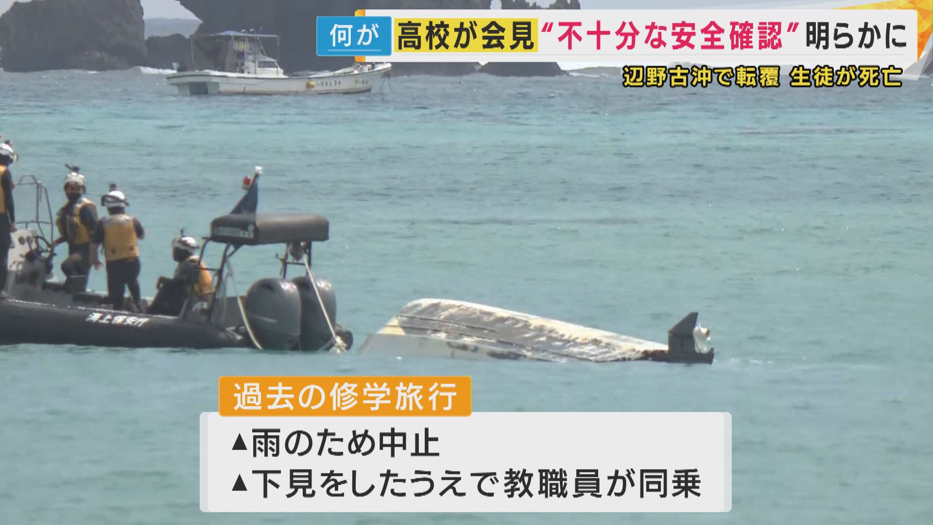 そして、午前10時10分ごろ、転覆した船に乗っていた生徒の証言によると、2隻のうちの1隻がまず転覆し、救助に向かったもう1隻も転覆したといいます。