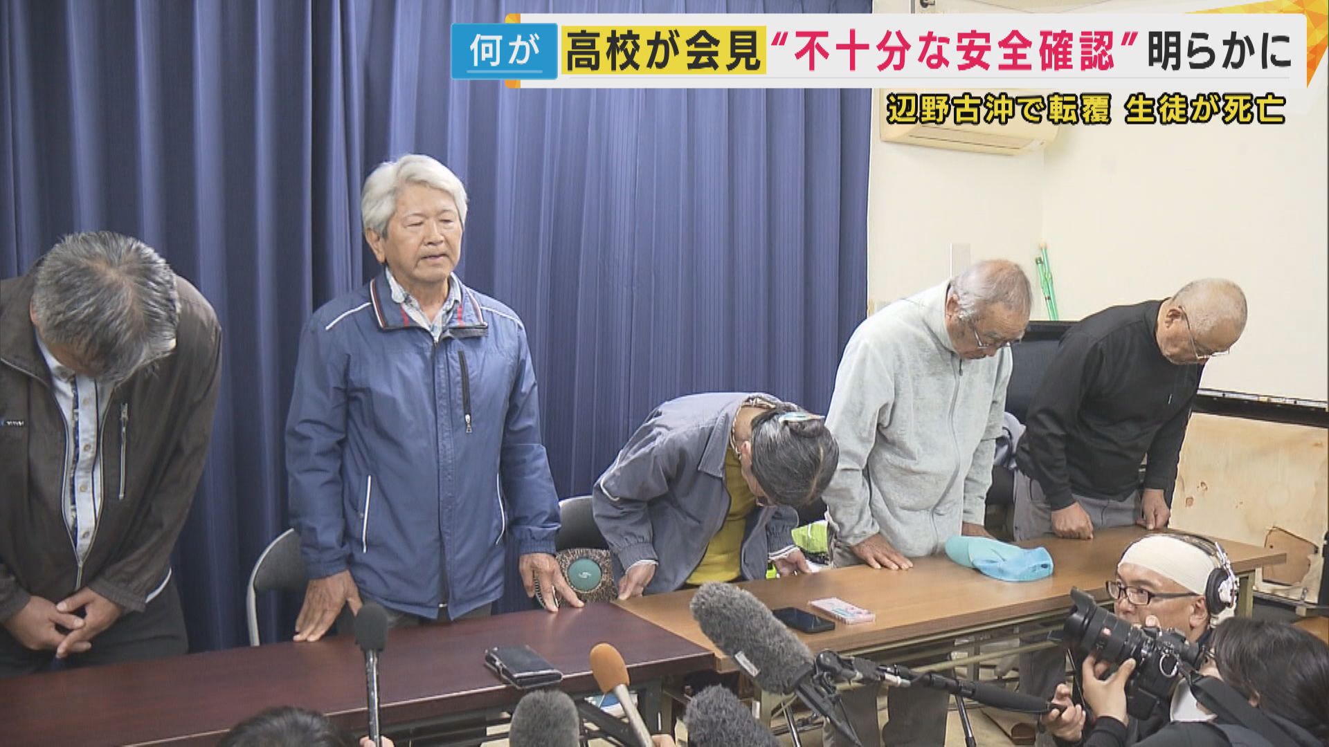 会見では、出航について死亡した船長の判断に任せていたことや旅客船ではない船が人を乗せるのに必要な登録がされていなかったのに、その確認もしていないなど、学校側の安全確認が十分とは言い難い状況が明らかになりました。