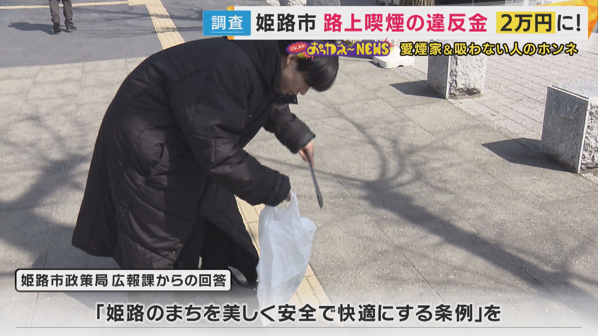 【秦令欧奈アナウンサー】「現時点の姫路の路上喫煙の実態を、私が身を挺して調査してまいります」
