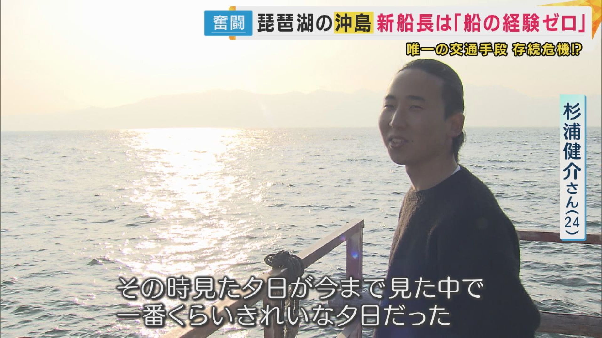 【杉浦健介さん】「ここ絶対夕日きれいやなと見に来たのが最初。その時見た夕日が、今まで見た中で一番くらいきれいな夕日だった。水面にオレンジ色が差し掛かって、向こうの山脈に落ちていく姿がきれいで。『こんな不便なところなんで来たん』って、島の人結構言うんですけど、この景色とか温かい人とか、お金に換えられないくらいすごい」