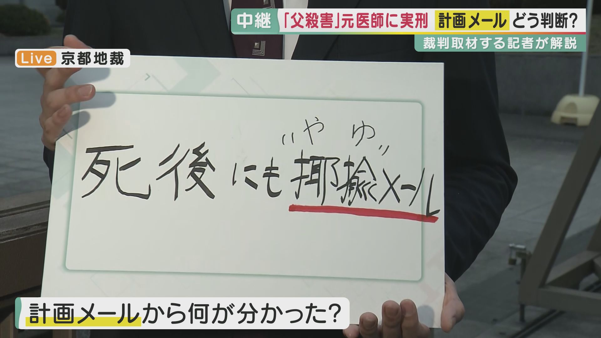 山本被告から母親にあてたメールには、「どうやって処分するか。問題は逃げ切れるかどうか」「父抹殺計画を実行に移したい。一度、下見してもらう必要がある」などと書かれていました。