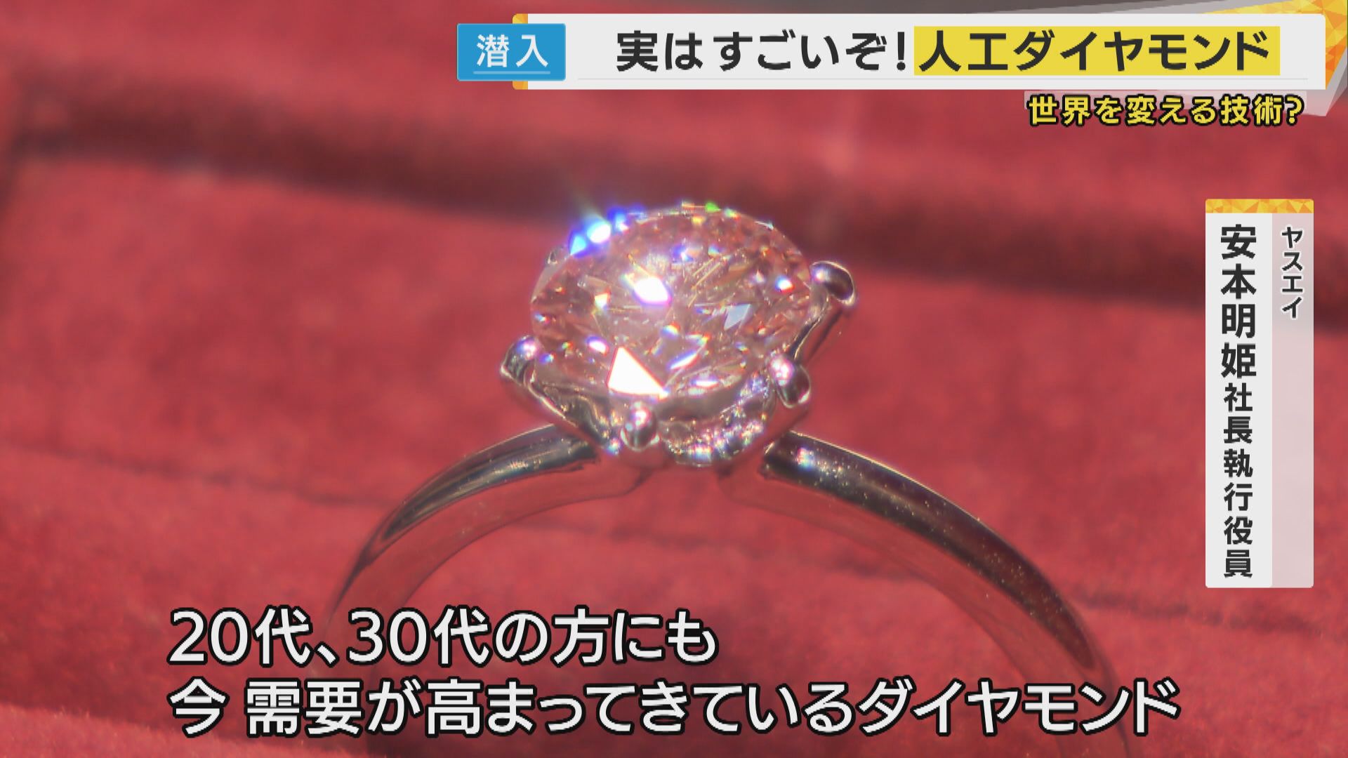 【ヤスエイ 安本明姫社長執行役員】「SNSとかで見栄えがとてもするものなので、20代30代の方にも今、需要が高まってきているダイヤモンド」