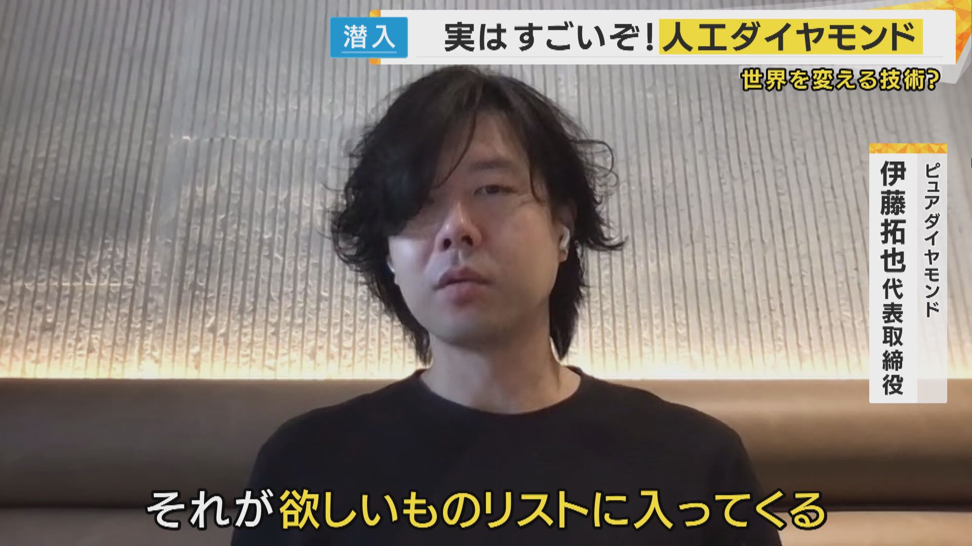 【ピュアダイヤモンド 伊藤拓也代表取締役】「(人工ダイヤの)生産の拡大、生産技術の確立というところは、この10年は非常にスピードが早かった、特にこの5年くらいは早かったと思います。需要と供給のバランスの問題で、価格は比較的下がりやすくなっていく」