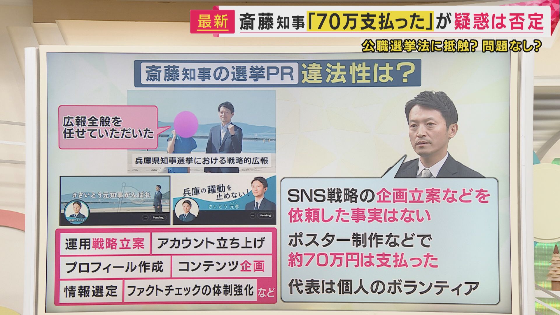 SNS戦略で再選の斎藤知事 PR会社へ「70万円支払った」が「抵触していない」と疑惑は一貫して否定