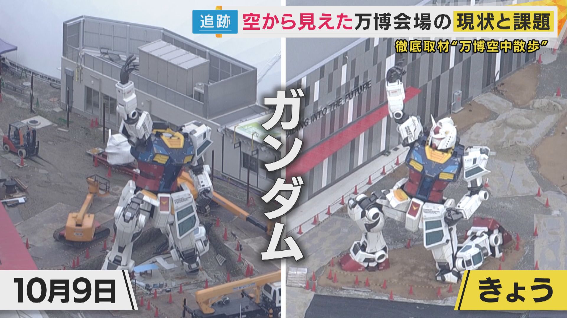 【記者リポート】「あちらに巨大なガンダムが見えてきました。大屋根リングの横にいるんですが、いまにも動き出しそうな迫力です」