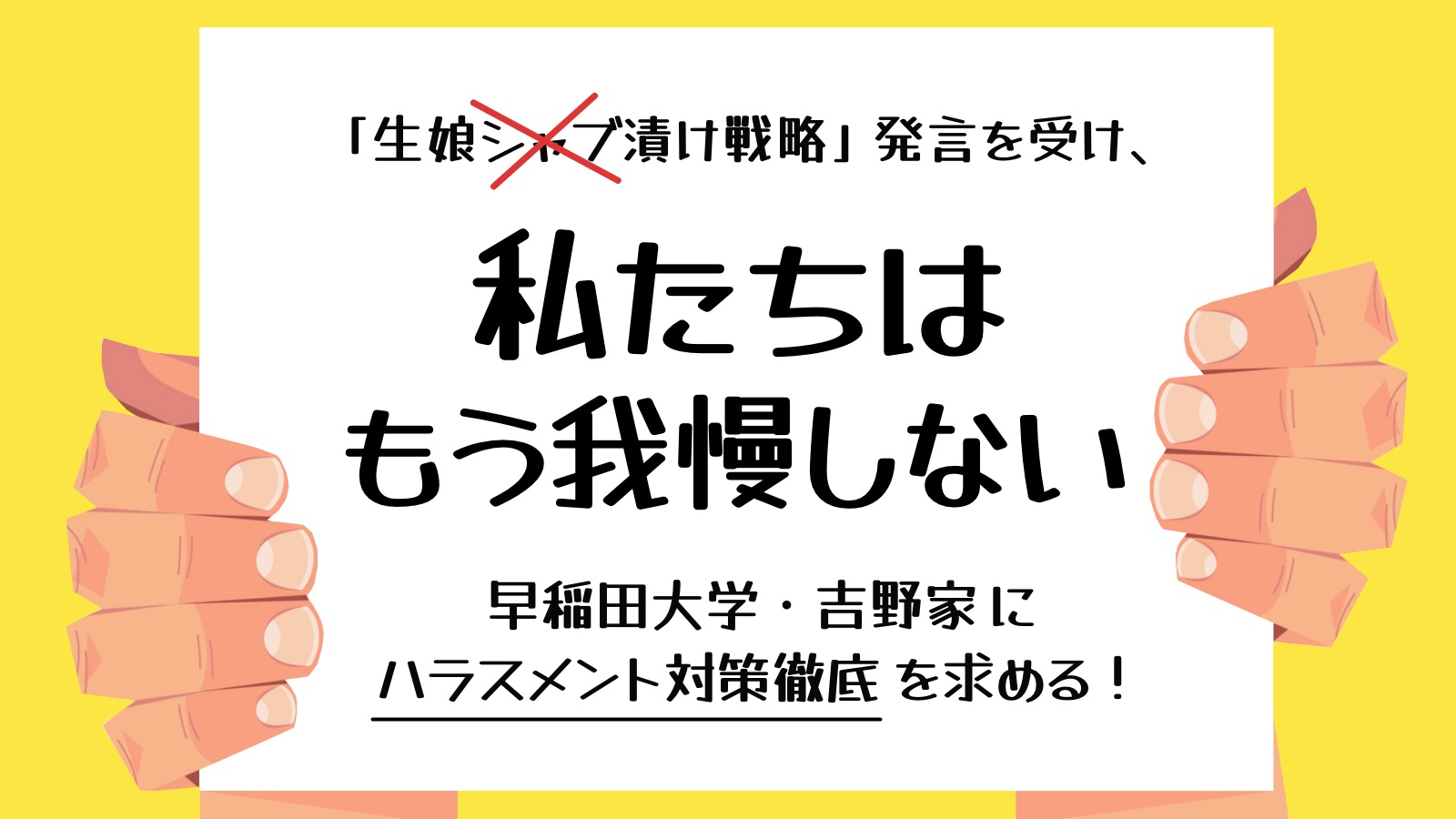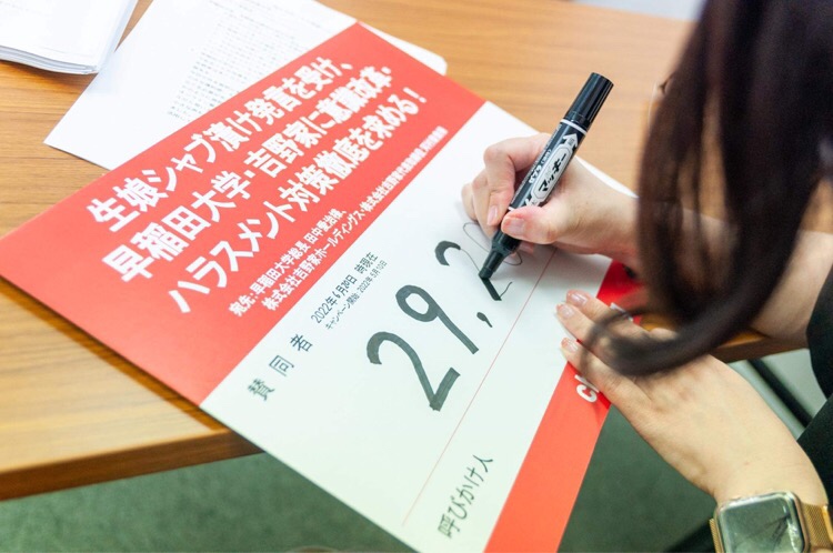 「もう我慢しない」 “生娘シャブ漬け”発言に対し声を上げた元受講生 吉野家と早稲田大学に対策求める2万9000人分の署名を提出 2022年06月22日