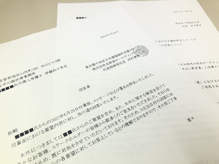 翌日、吉野家の常務(当時)から謝罪のメールが来ましたが、抗議をした本人の名前を伝えているのも大学の対応としてどうなのかと感じました。