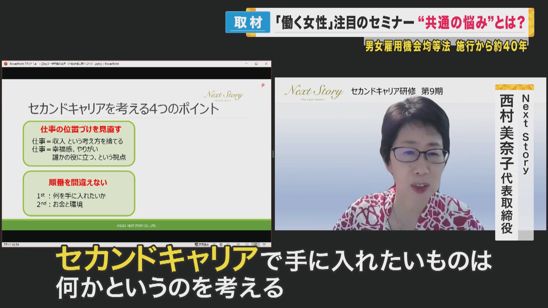 【NextStory 西村美奈子代表取締役】「セカンドキャリアだからこそ自分のやりたいことに挑戦する。何で、セカンドキャリアとして働きたいかっていうことをちゃんと考える。徹底的に自分と向き合うとともに行動に移すということを言っています」