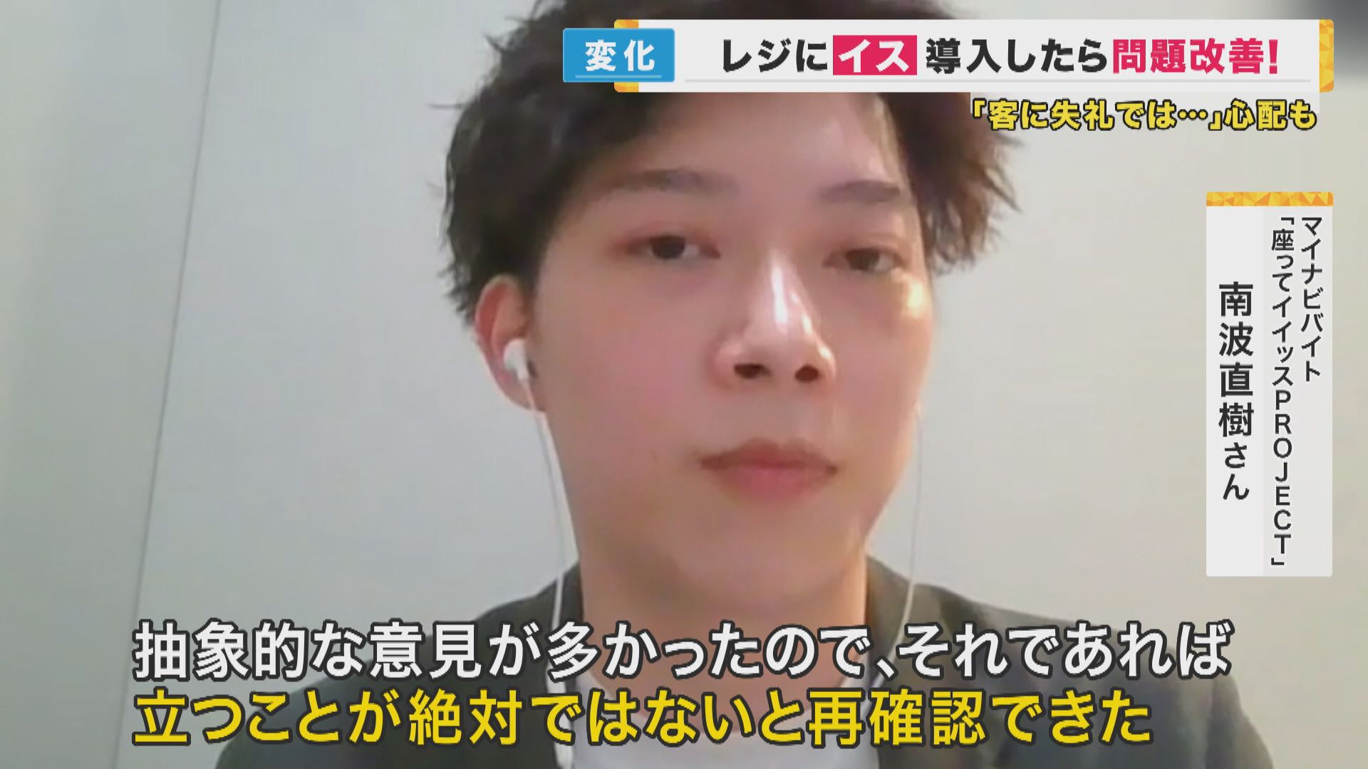 【マイナビバイト「座ってイイッスPROJECT」南波直樹さん】「海外に行った際、海外のスーパーだと座ってるのが当たり前。日本と違う部分に気づいたところが一番のきっかけ。企業などに意見を聞くと、(立ちっぱなしの)明確な理由がないことに気付いた。『なんとなく立っていたほうが、見栄えがいい』とか、『礼儀正しそうに見える』とか、抽象的な意見が多かったので、それであれば立つことが絶対ではないと再確認できた」