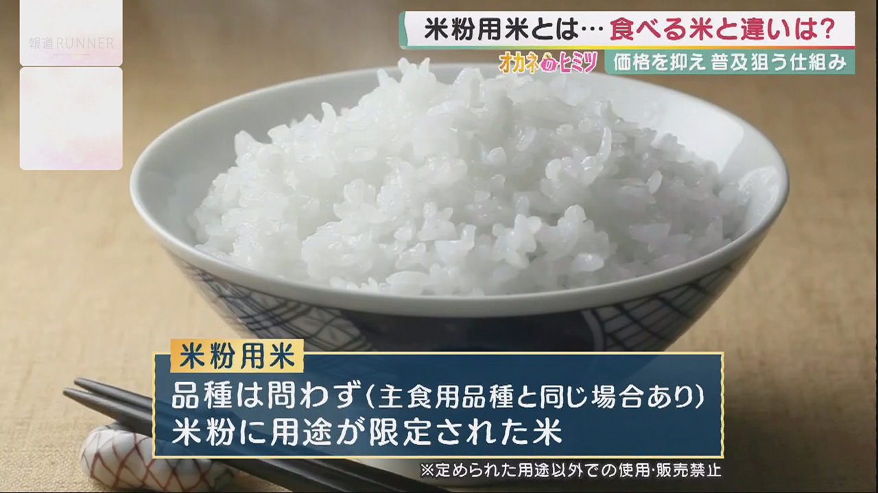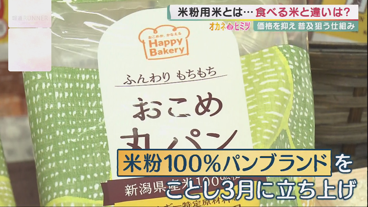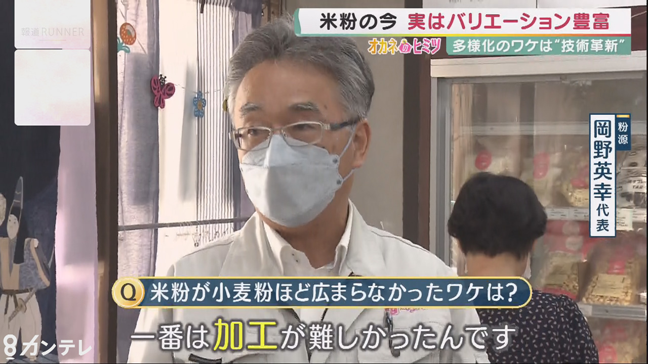 「農家さんは皆さん主食用(の品種)で売られるんですけど、そのお値段で我々が買って米粉にしてしまうと、非常に高いものになってしまう。売る時に難しくなるので、できるだけ小麦粉に近づけようということで、国の方から農家さんに助成金を」