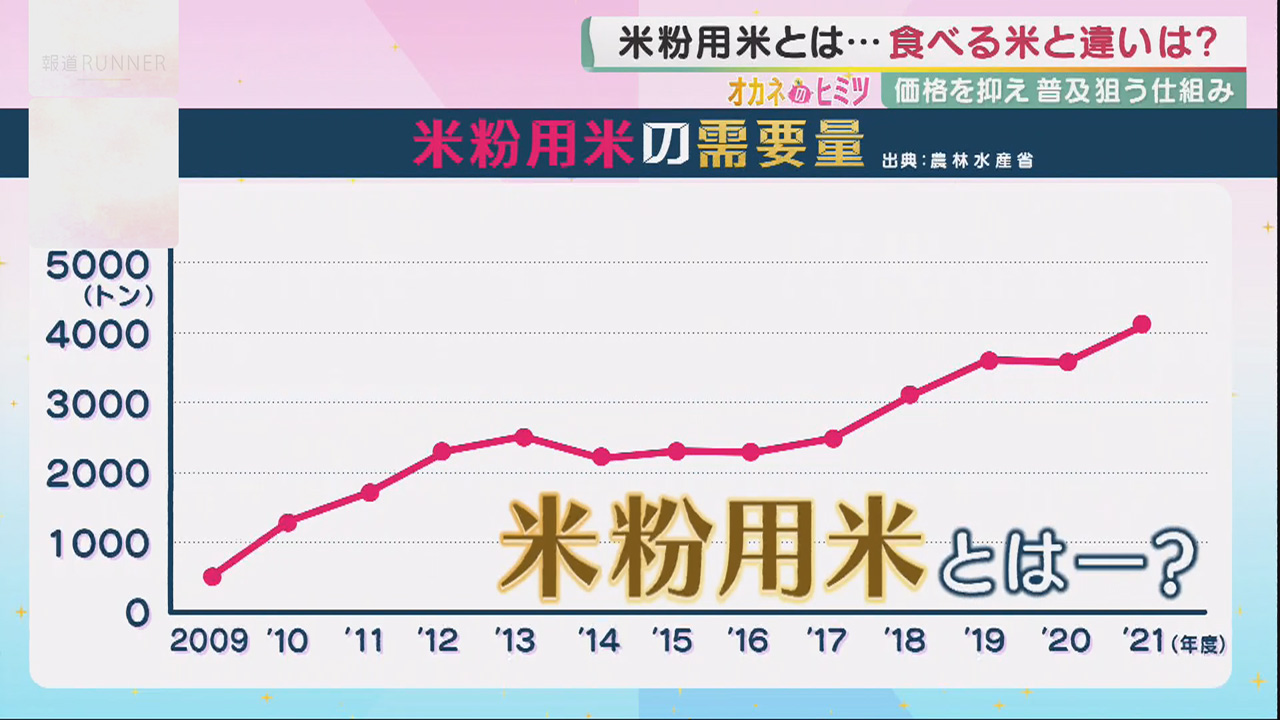 一方で「米粉」に使うお米は右肩上がりに。お米は食べなくなってきているけど、米粉は使う…そんな現状が明らかになっています。