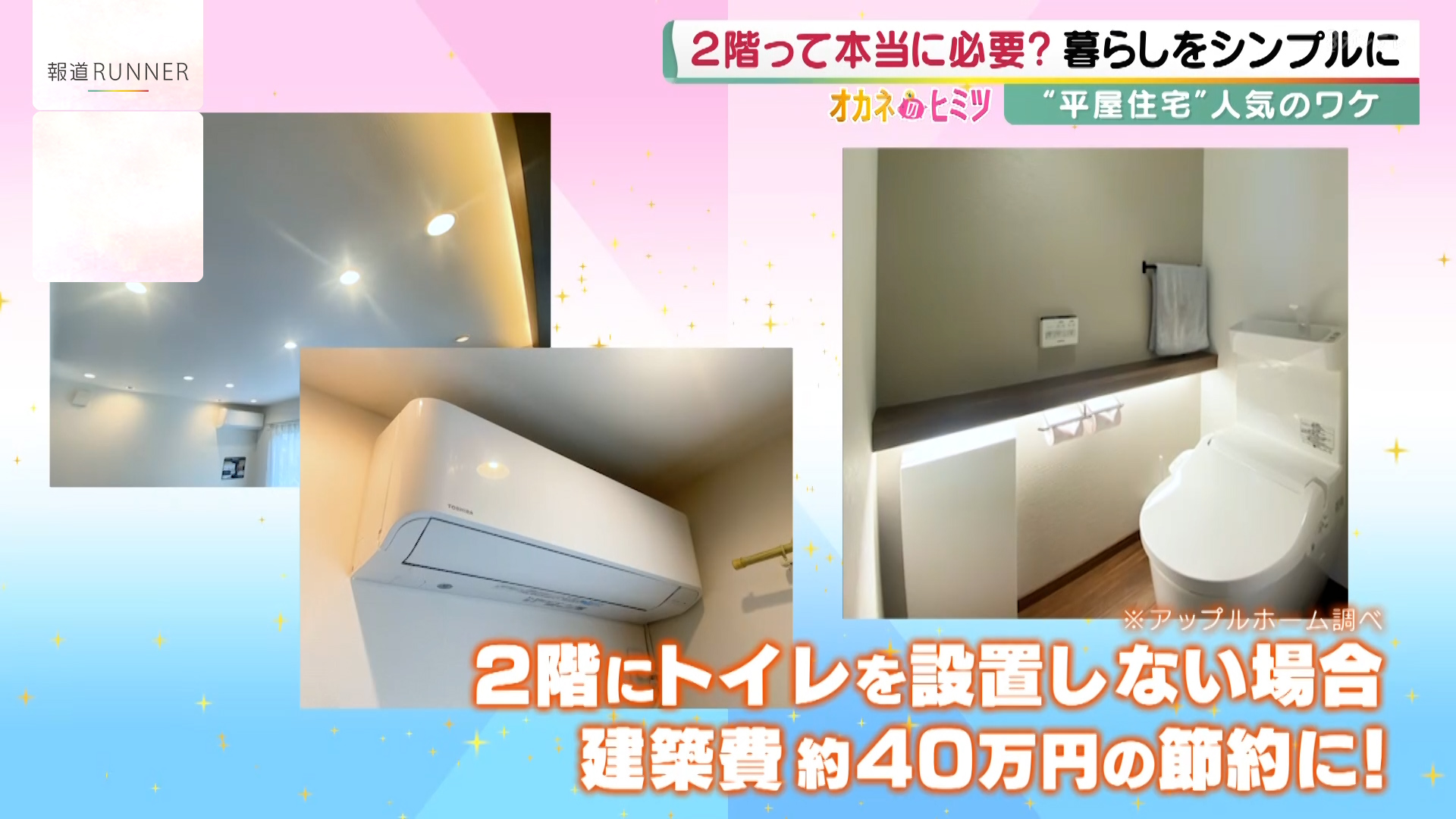 2階にトイレを設置しないだけで、約40万円もの節約になるそうです(※アップルホーム調べ)。